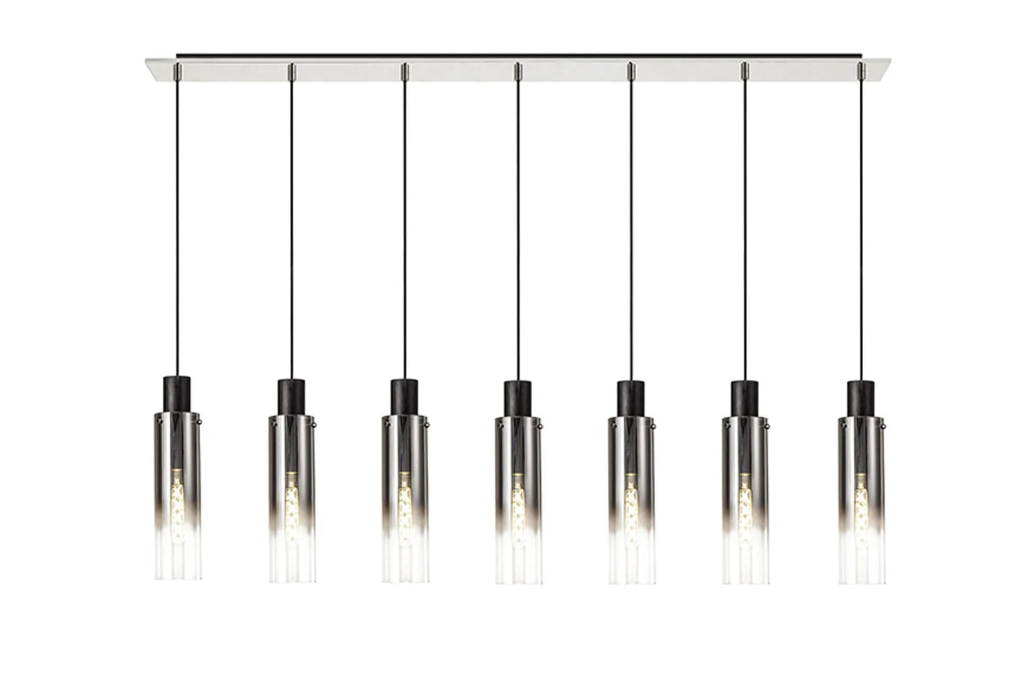 Bridges Linear Pendant, 7 Light Adjustable E27, Black/Smoke Fade Glass