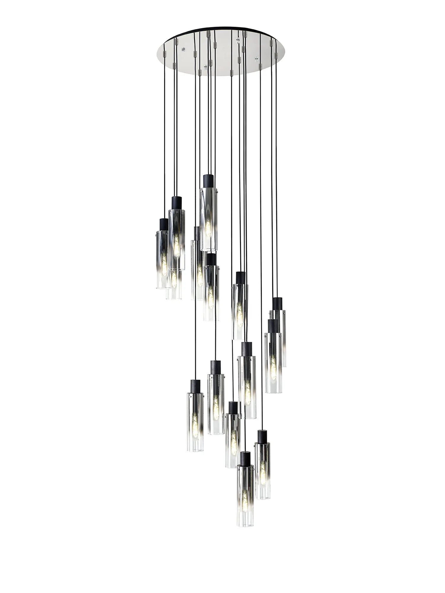 Bridges Round Pendant, 15 Light Adjustable E27, Black/Smoke Fade Glass (25.3kg)