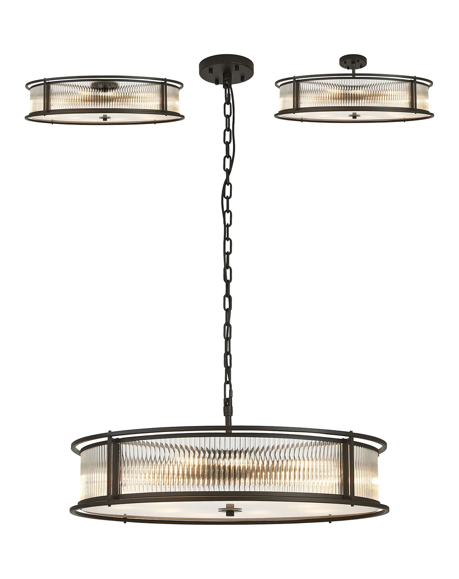 Brooking 80cm Round Flush/Semi Ceiling/Pendant Convertible, 10 x E14, Black/Clear Glass