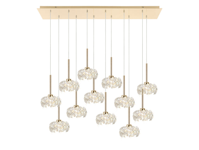 Byrne 12 Light G9 2m Linear Pendant With French Gold And Crystal Shade