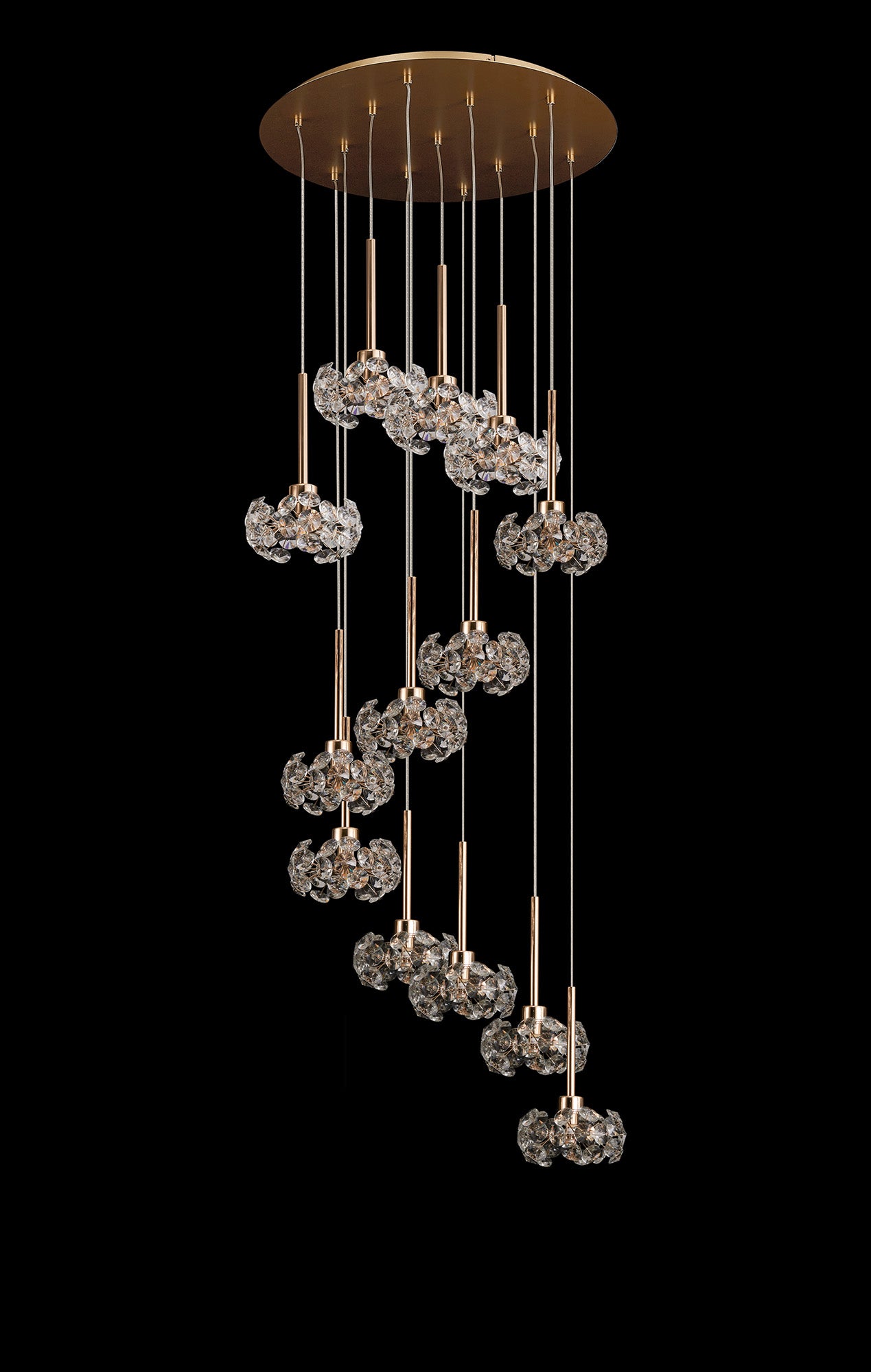 Byrne 13 Light G9 2.5m Round Multiple Pendant With French Gold And Crystal Shade