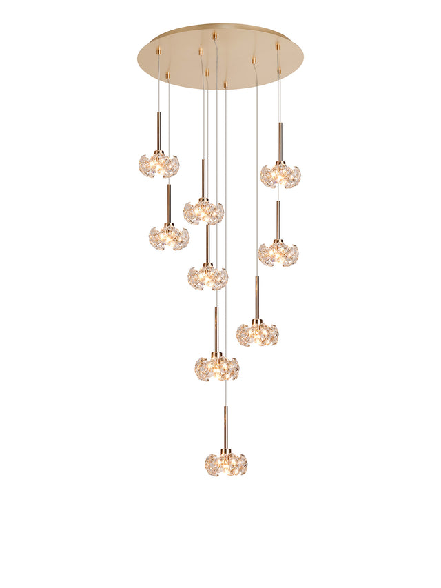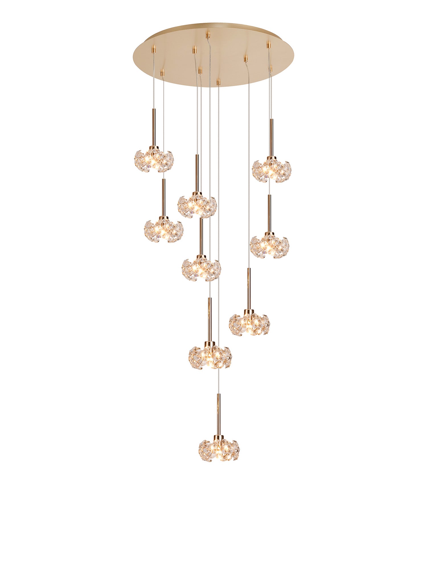 Byrne 9 Light G9 Universal 2.5m Round Multiple Pendant And Crystal Shade, French Gold