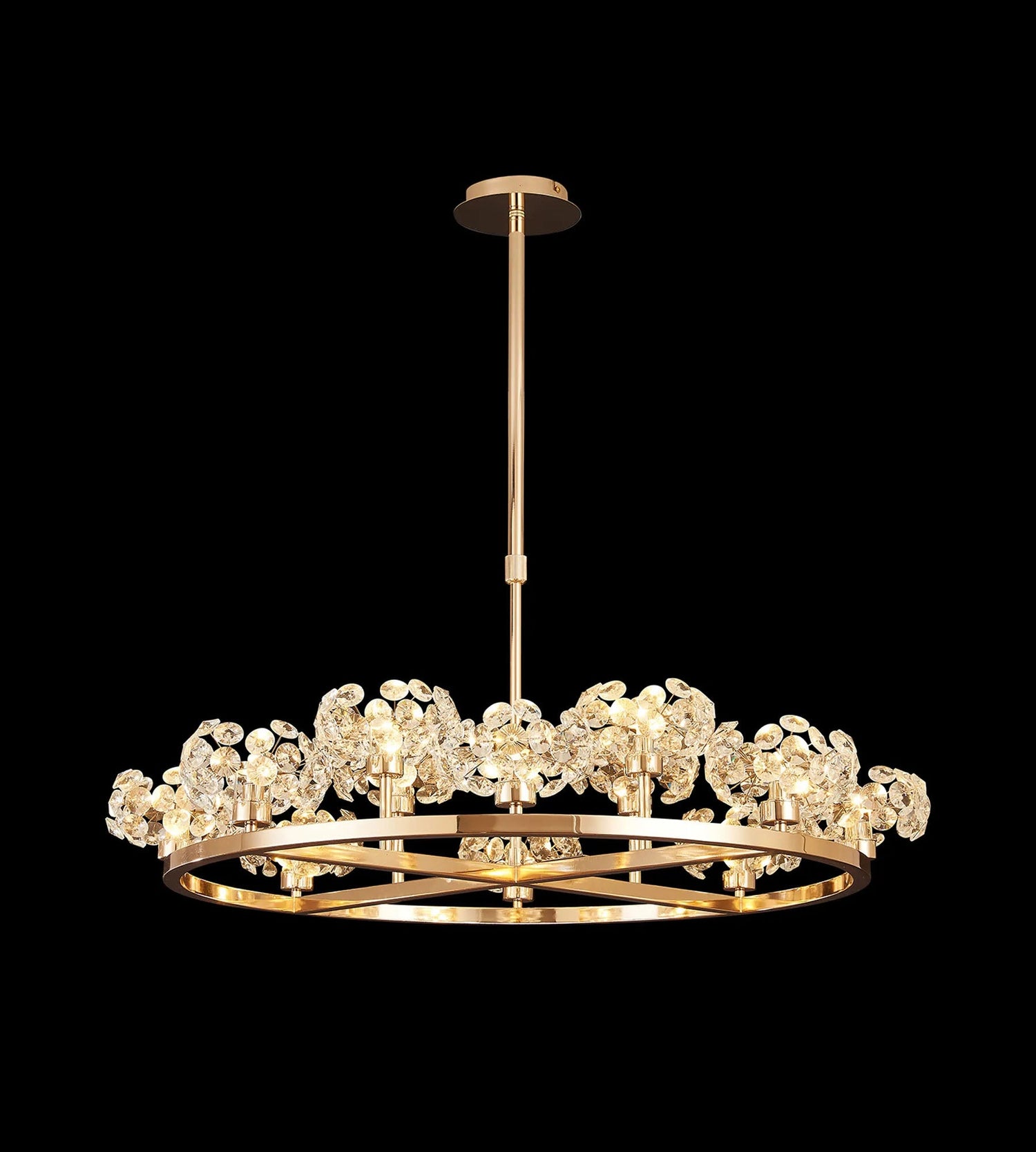 Byrne French Gold 8 + 4 Light Round G9 Telescopic Light French Gold & Crystal Shade