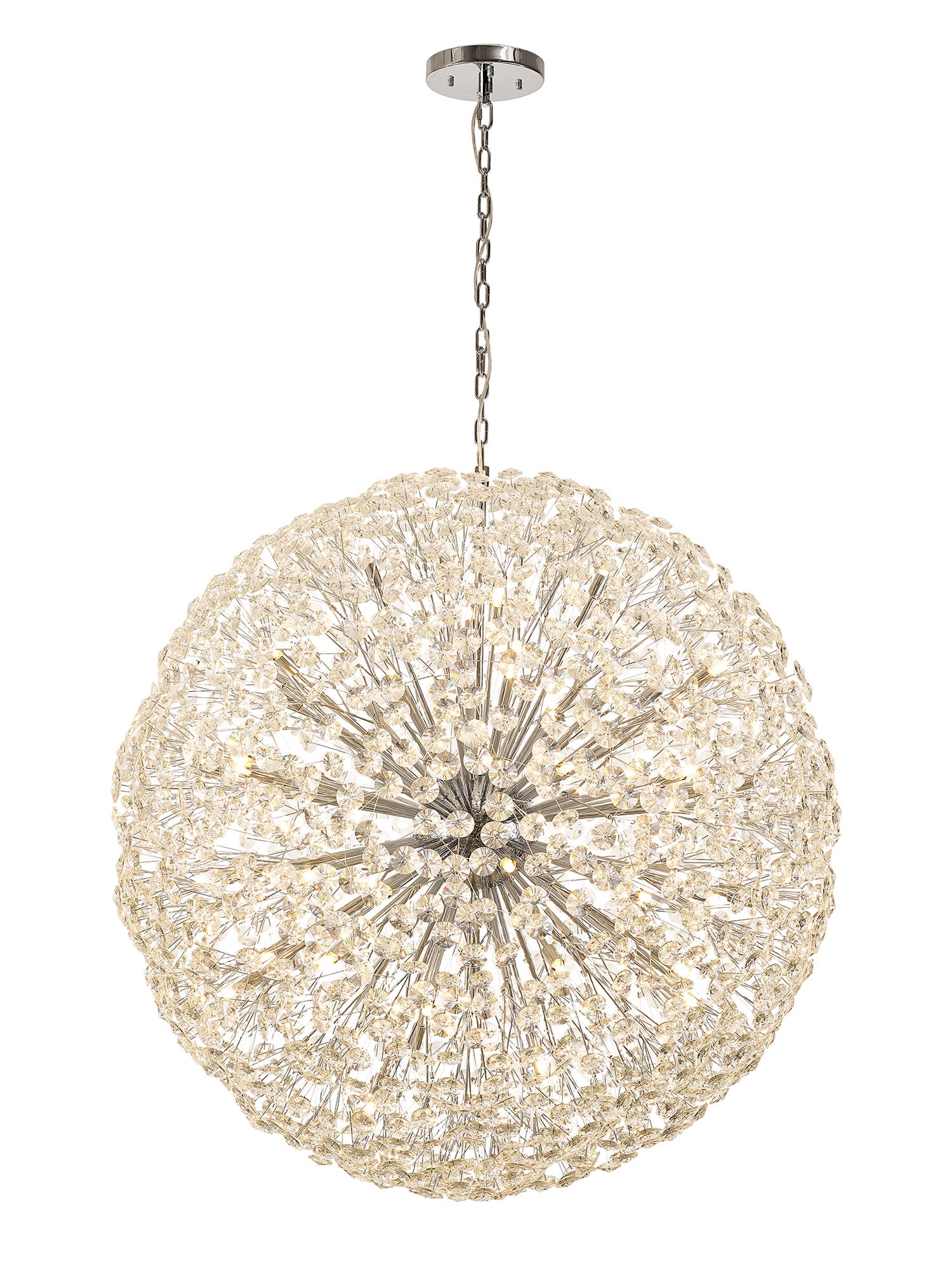 Byrne Pendant 1.2m Sphere 64 Light G9 Polished Chrome / Crystal, Item Weight: 60kg