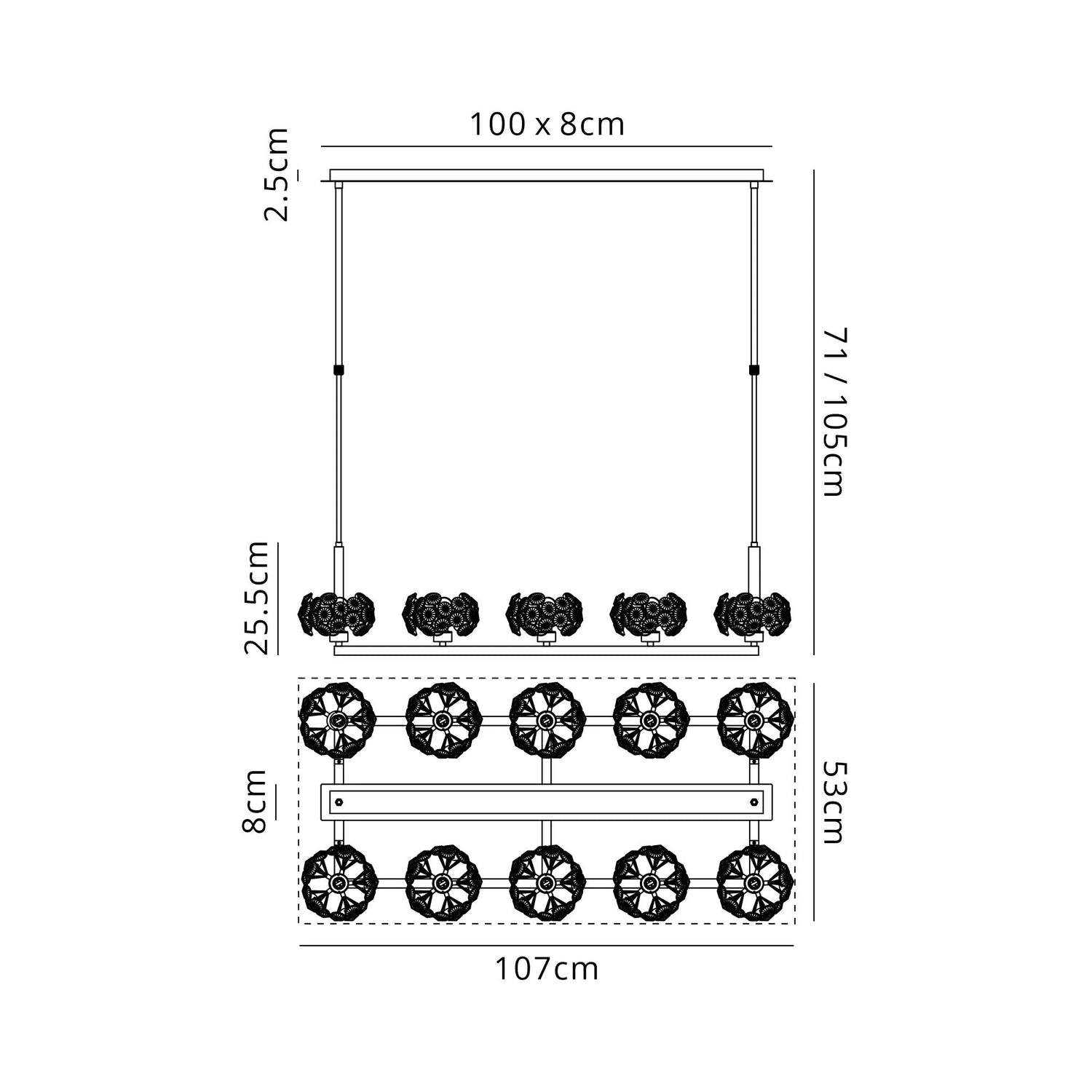 Byrne Satin Black 10 Light Rectangle G9 Telescopic Light Satin Black & Crystal Shade
