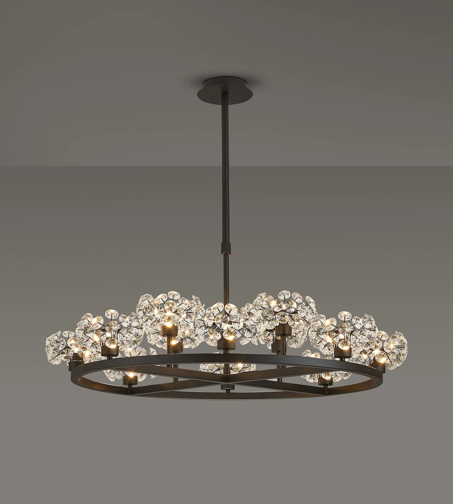 Byrne Satin Black 8 + 4 Light Round G9 Telescopic Light Satin Black & Crystal Shade