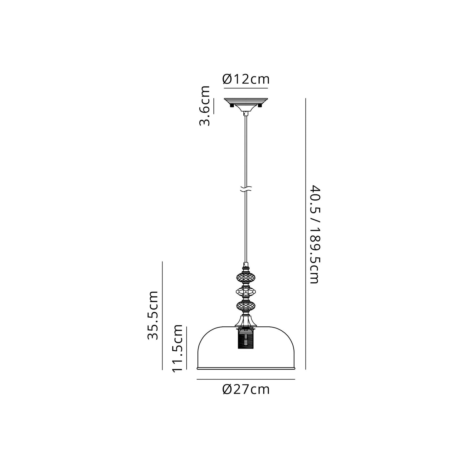 Embieton Crystal Pendant (D), 1 Light E27, Antique Brass/Clear Crystal/Clear 27cm Glass Shade