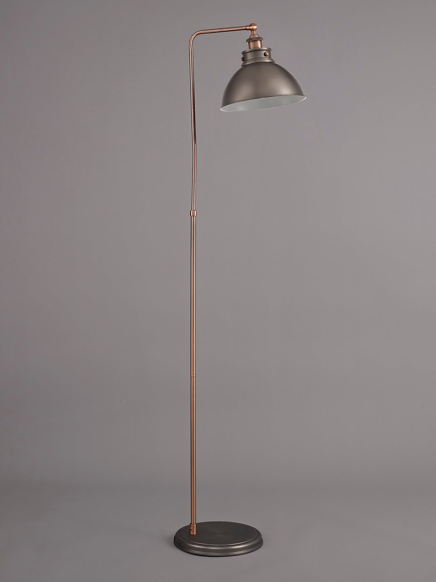 Entwistle Adjustable Floor Lamp, 1 x E27, Antique Silver/Copper/White