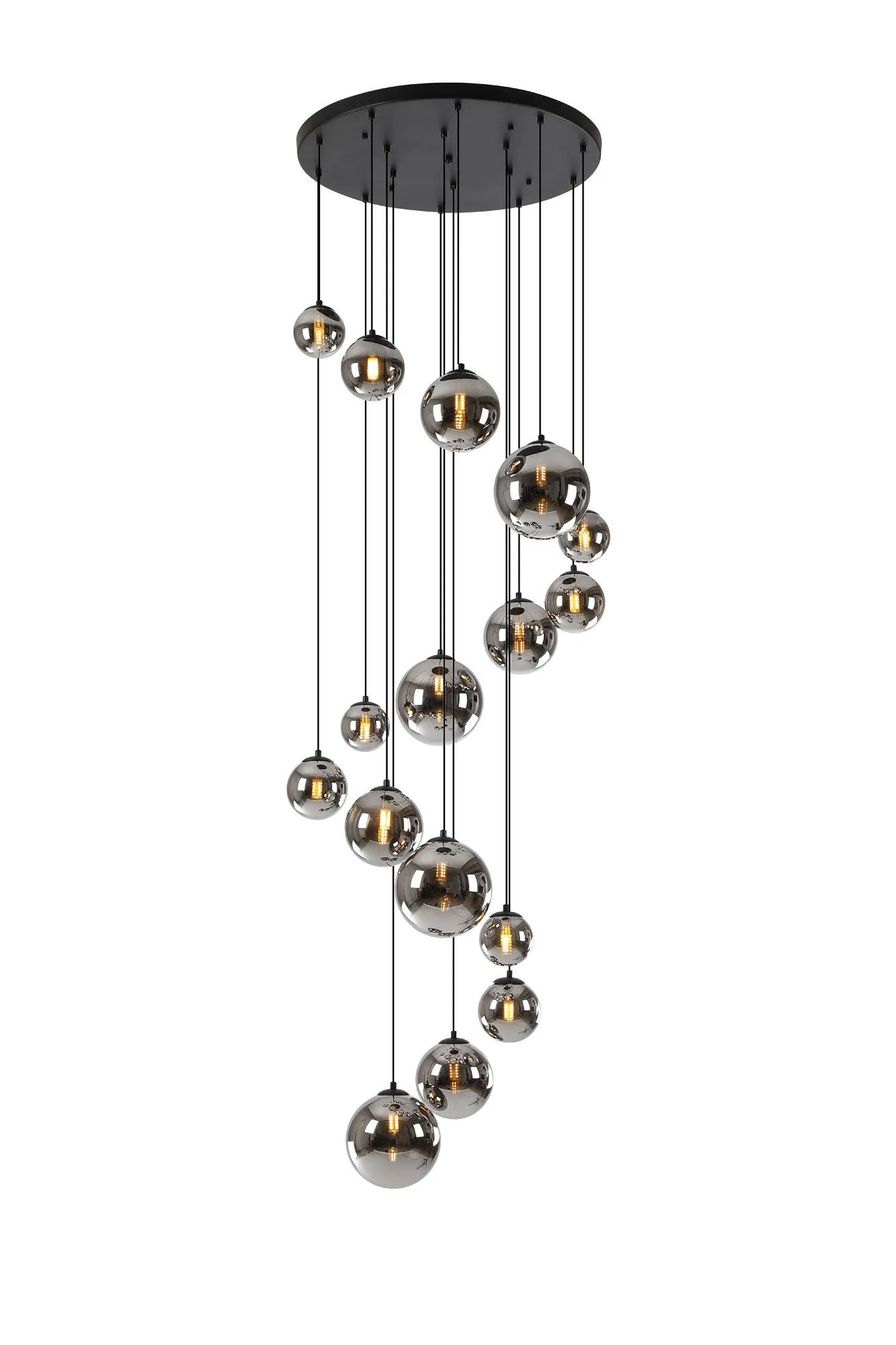 Ferguson Pendant, 16 x G9, Satin Black, Chrome Plated Glass
