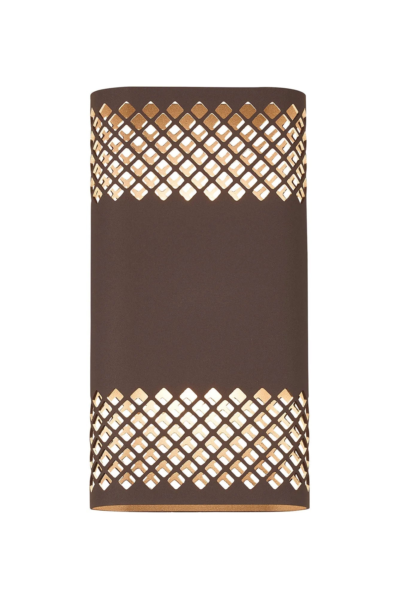 Galloway Wall Lamp With 160 x 305mm Mesh Diamond Pattern Shade, 2 x 6.5W LED, IP65, Cacao