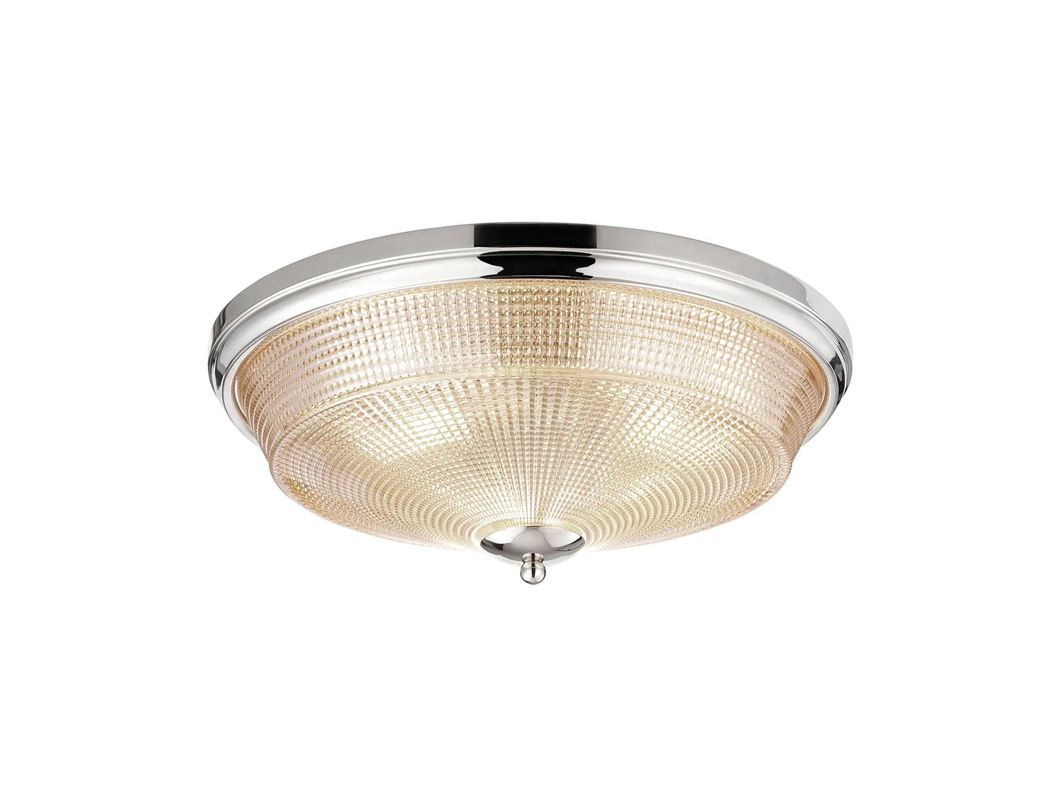 Gray 3 Light E27 Flush Ceiling Light, Polished Nickel/Amber Glass