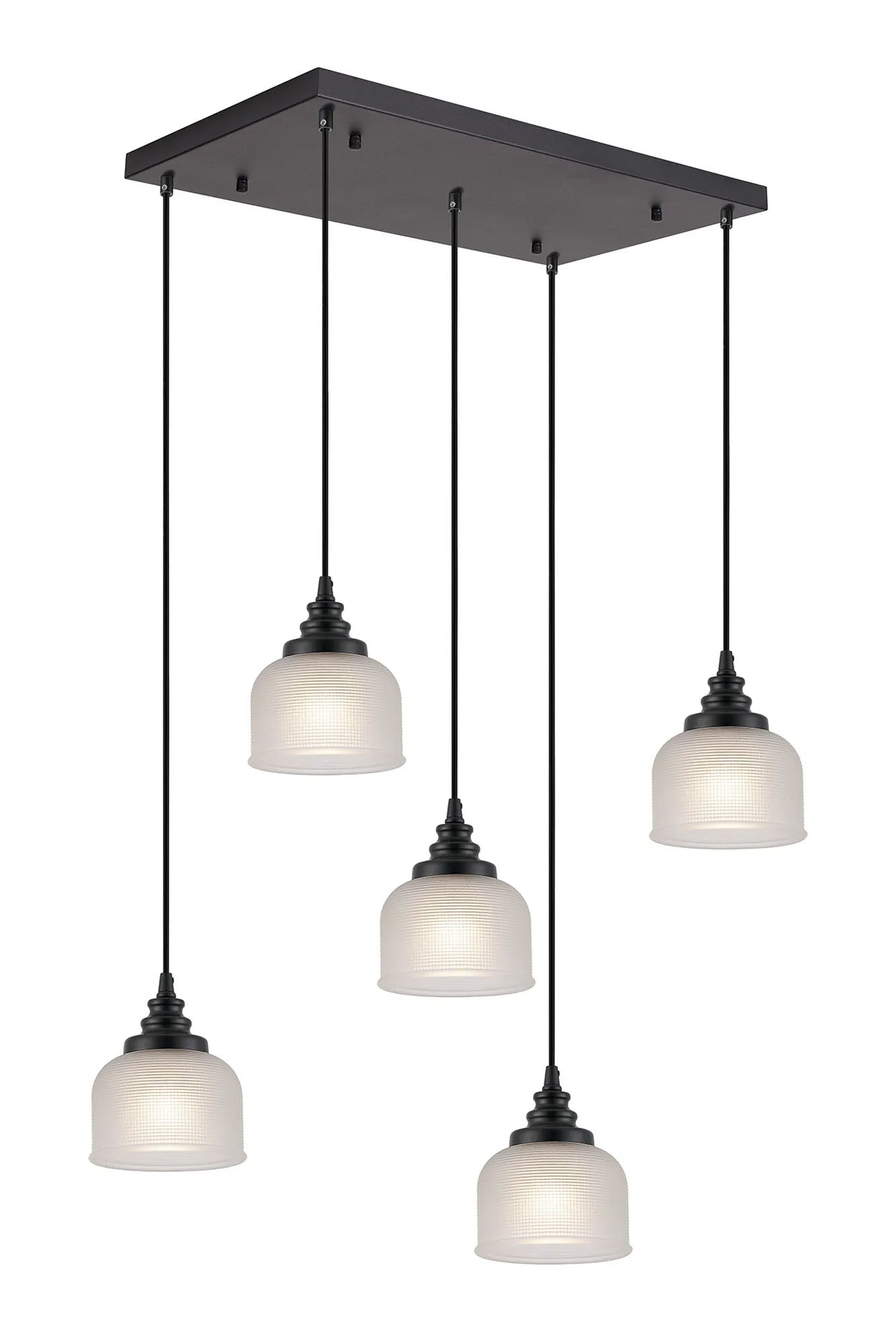 Gray 5 Light Rectangular Pendant, E27, Satin Black/Prismatic Dome Glass, Frosted