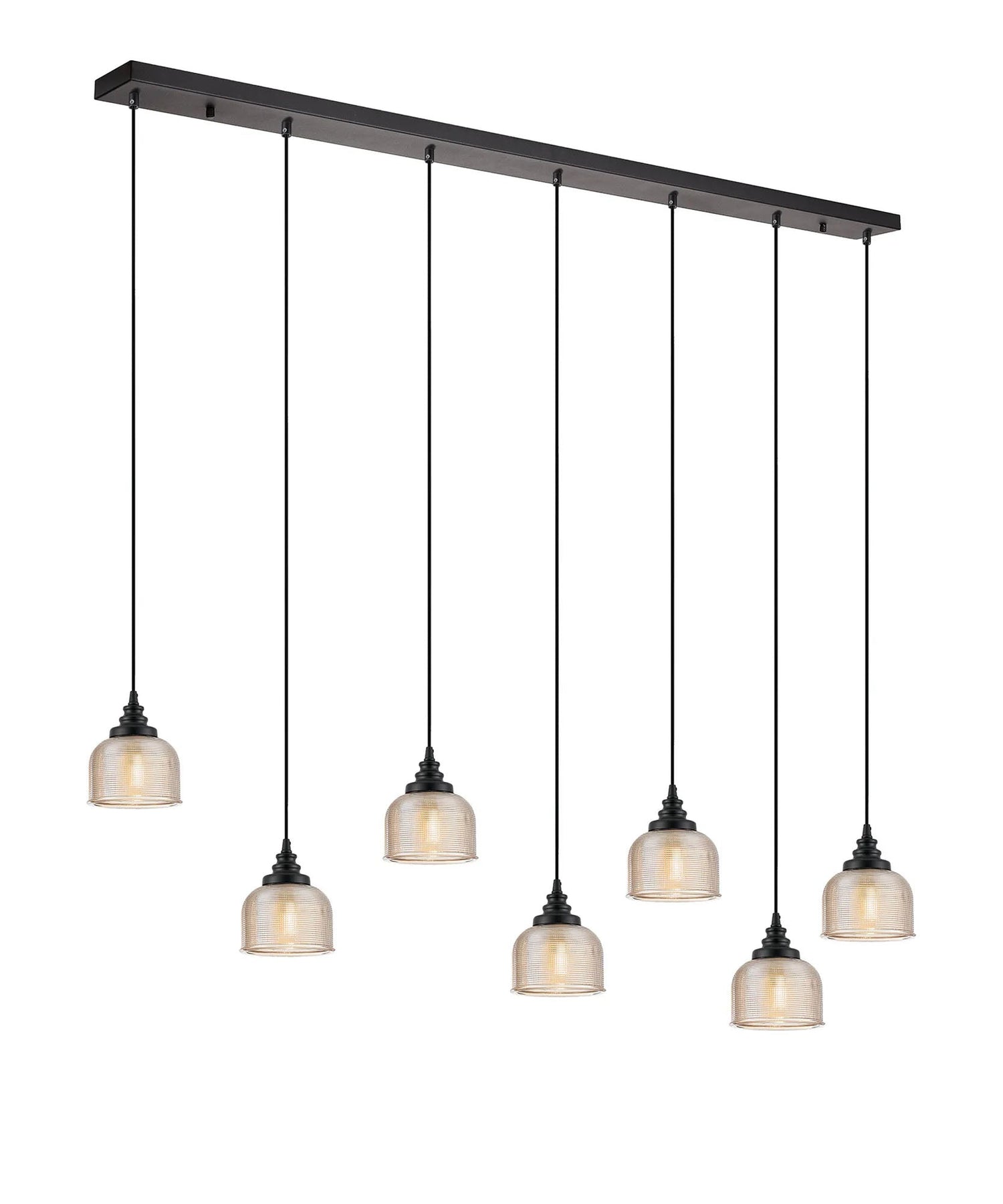 Gray 7 Light Linear Pendant, E27, Satin Black/Prismatic Dome Glass, Amber