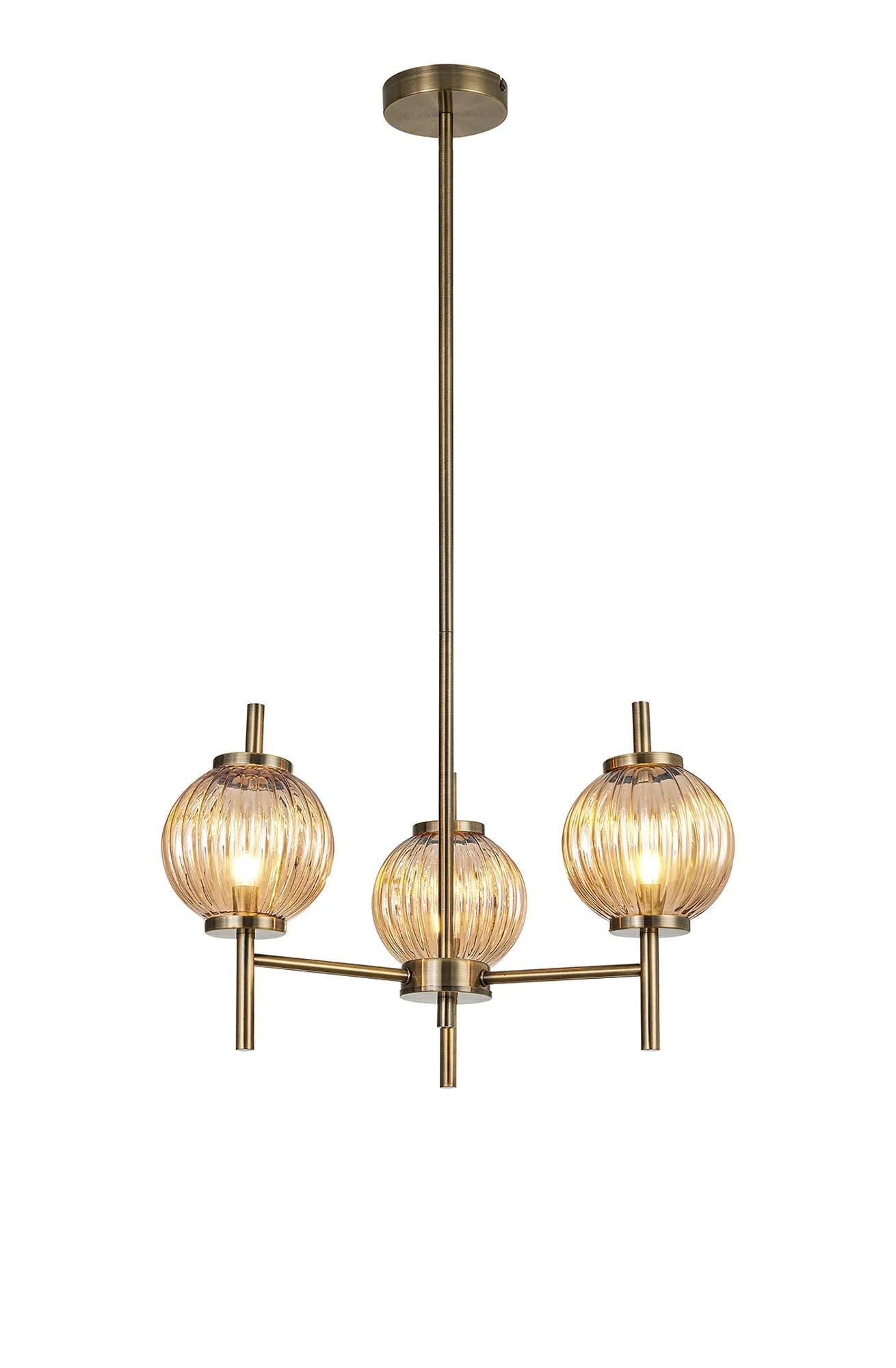 Halom 55cm Multi Height Pendant, 3 x G9, Antique Brass/Amber Glass