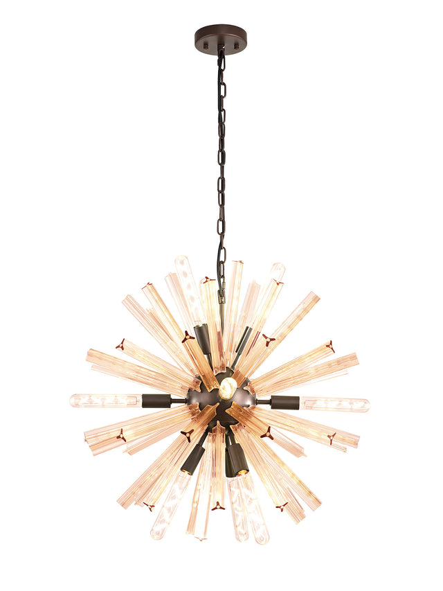 Harris 10 Light E14, Round Pendant Brown Oxide / Champagne Gold Glass