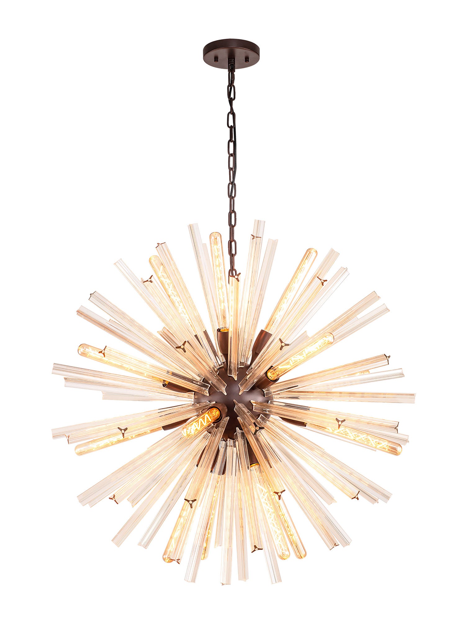 Harris 16 Light E27, Round Pendant Brown Oxide / Champagne Gold Glass is backordered and will ship as soon as it is back in stock.