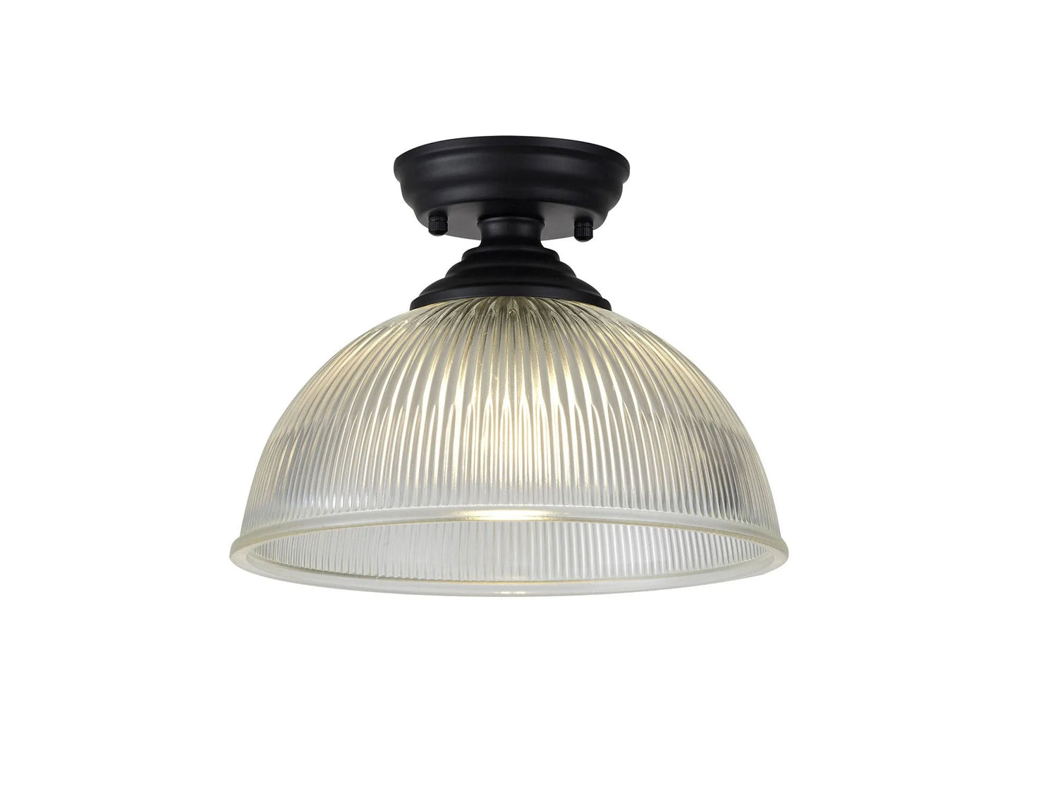 Holloway 1 Light Flush Ceiling E27 With Dome 30cm Glass Shade Matt Black/Clear