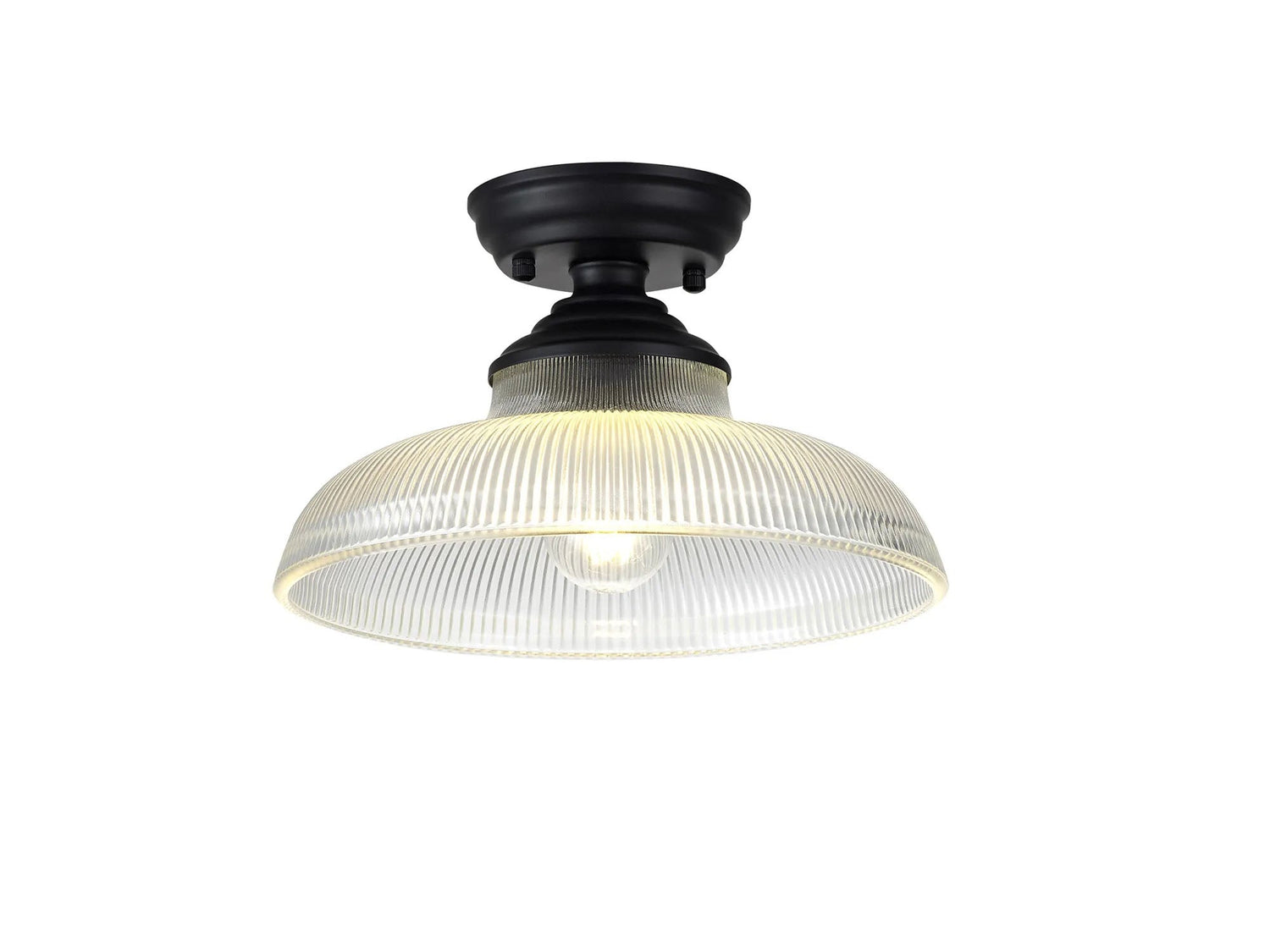 Holloway 1 Light Flush Ceiling E27 With Round 30cm Glass Shade Matt Black/Clear