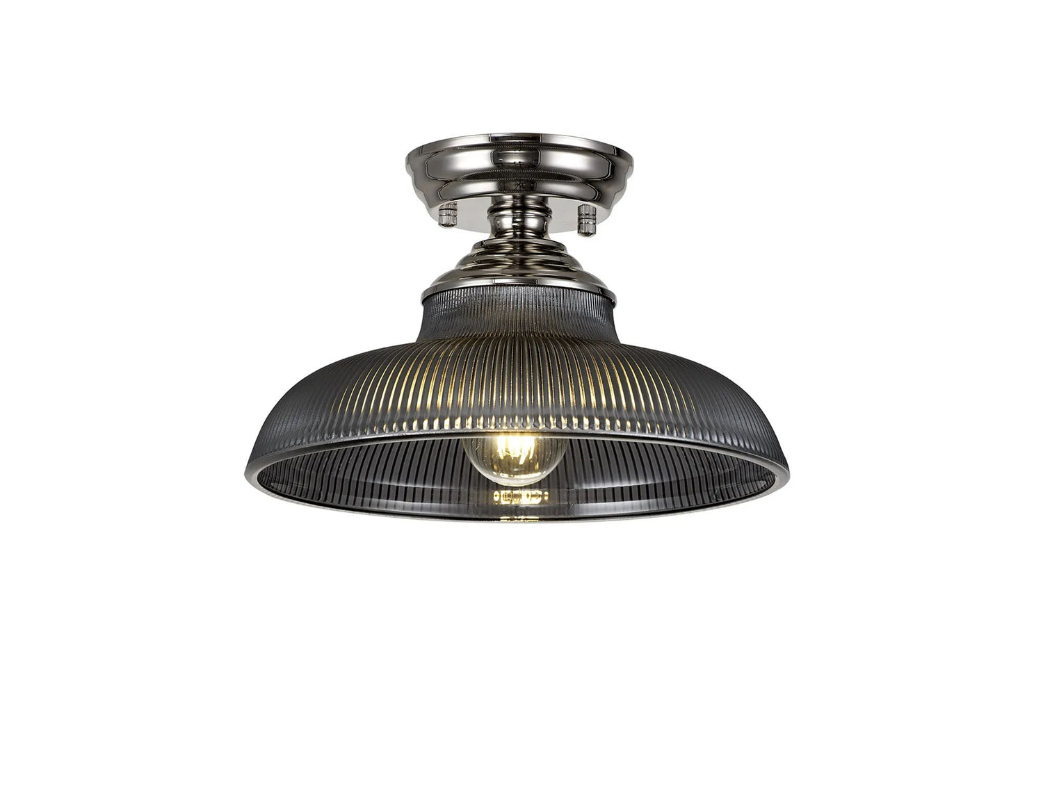 Holloway 1 Light Flush Ceiling E27 With Round 30cm Glass Shade Polished Nickel/Smoked