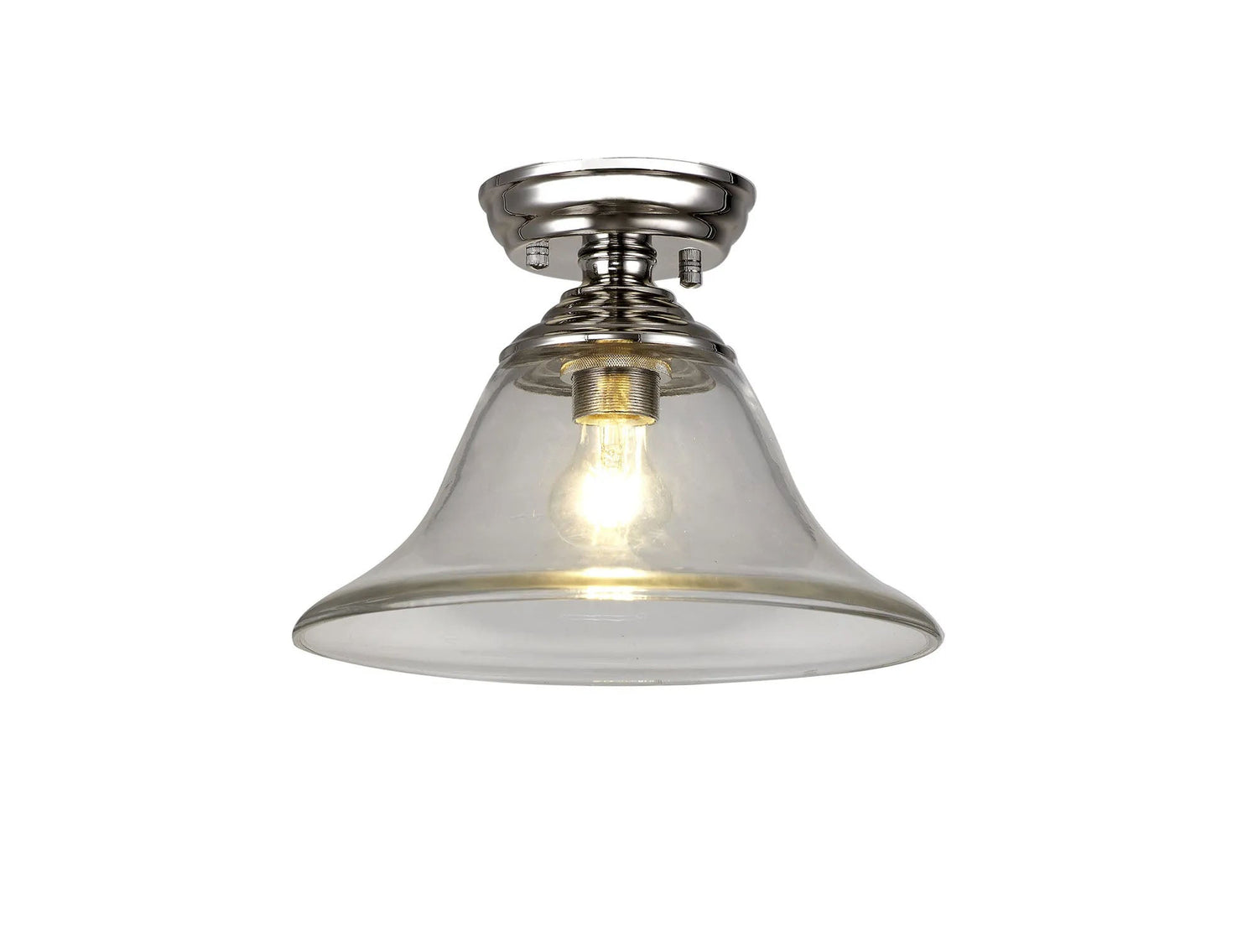 Holloway 1 Light Flush Ceiling E27 With Smooth Bell 30cm Glass Shade Polished Nickel/Clear