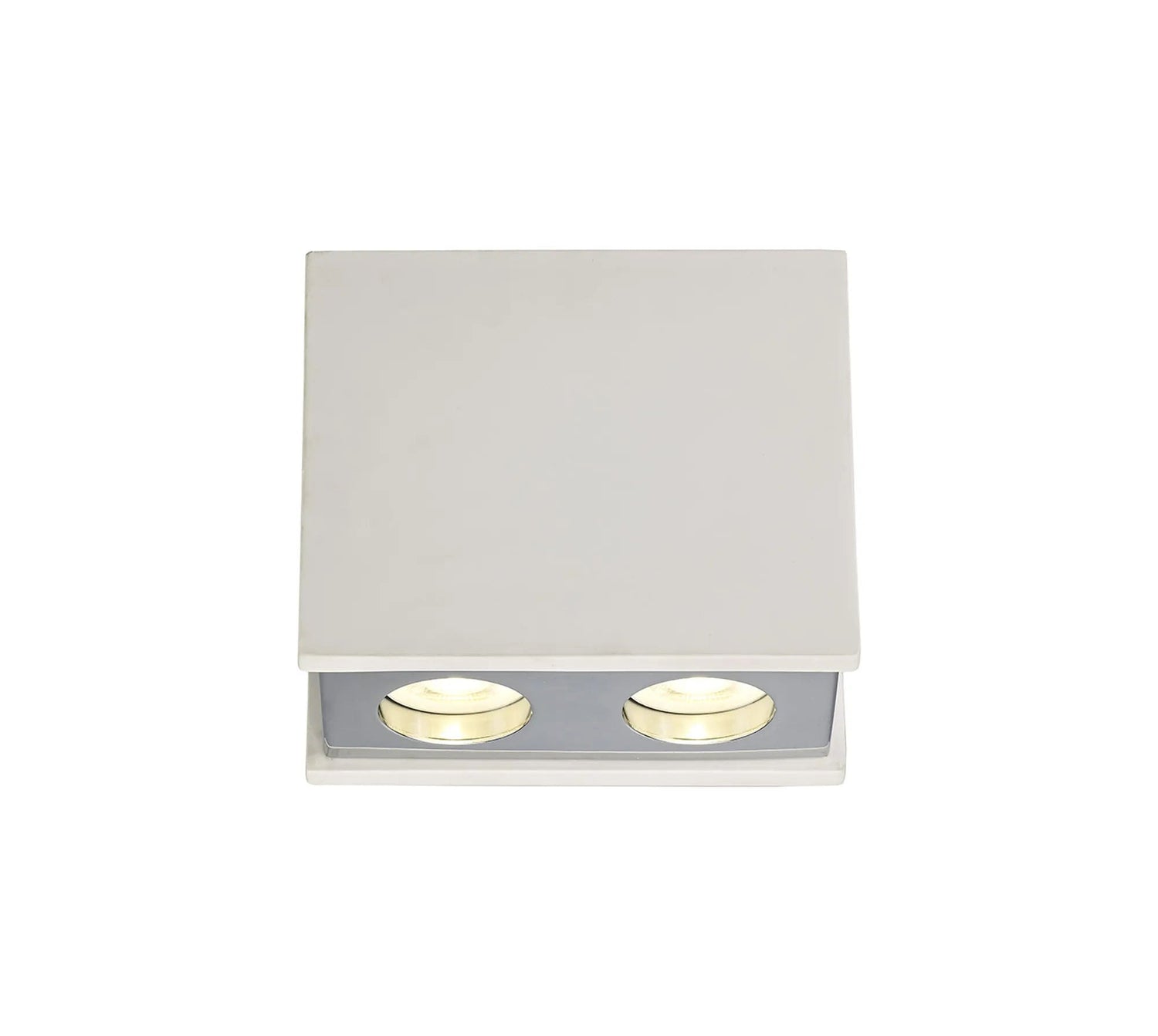Holloway 2 Light Rectangular Ceiling GU10, White Paintable Gypsum With Polished Chrome Cover