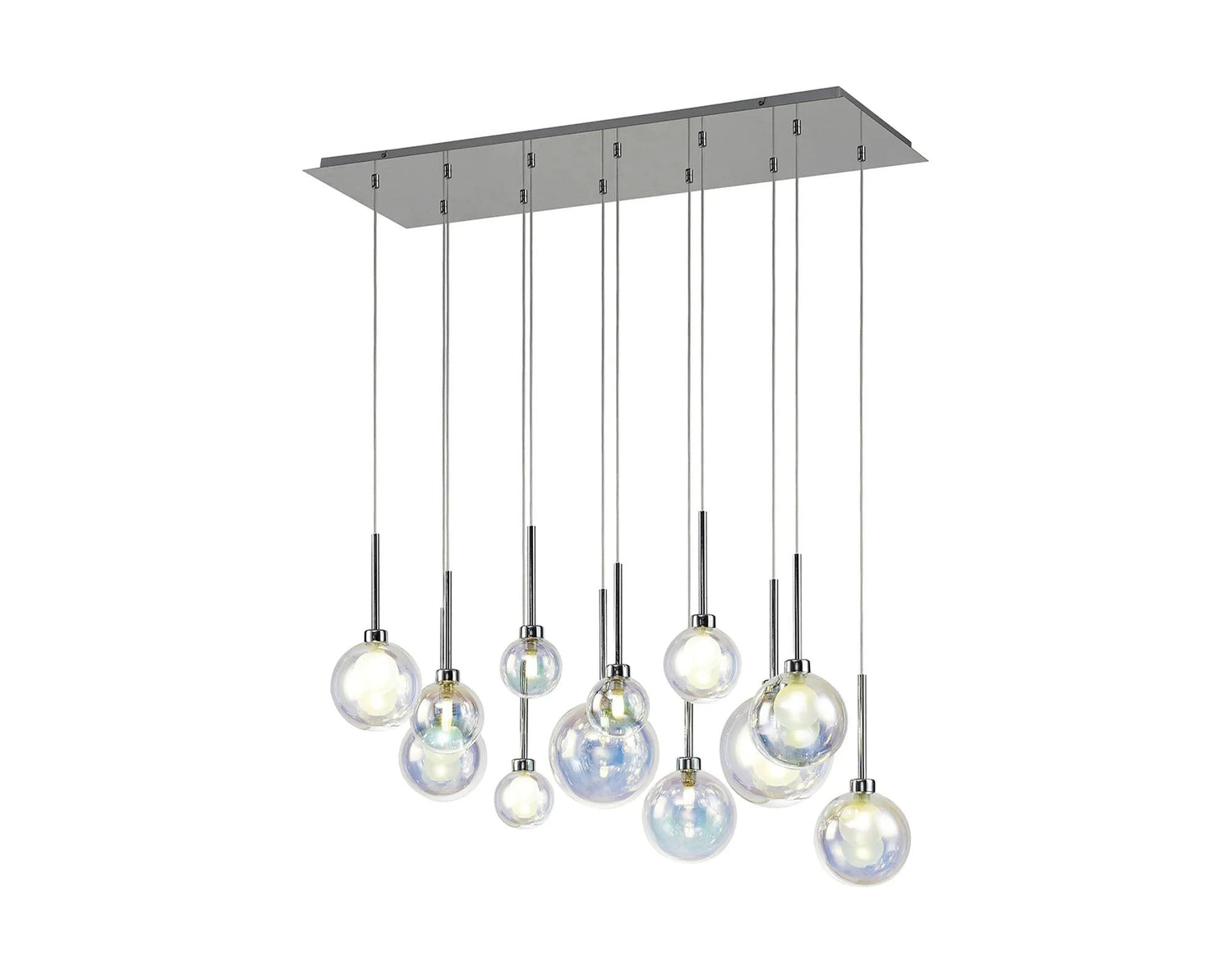 Lathen Linear Pendant 2m, 12 x G9, Polished Chrome/Iridescent/Frosted Type G Shade
