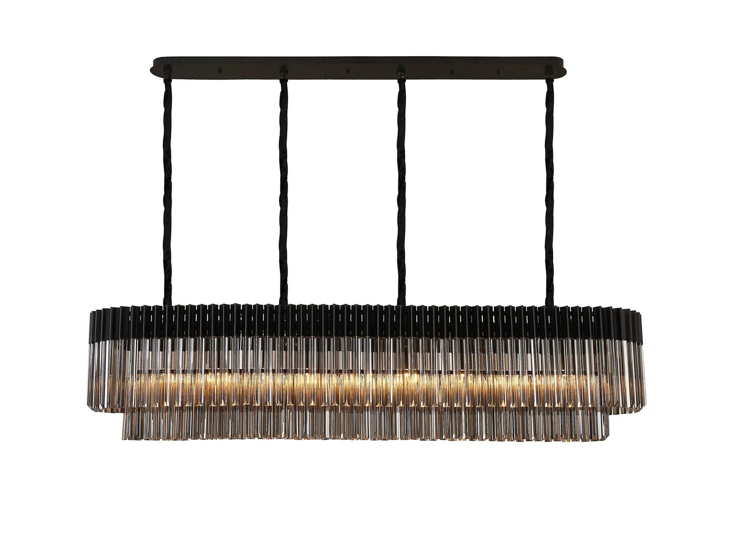 Longhorn 180 x 40cm Linear Pendant, 9 Light E14, Matt Black/Smoked Sculpted Glass