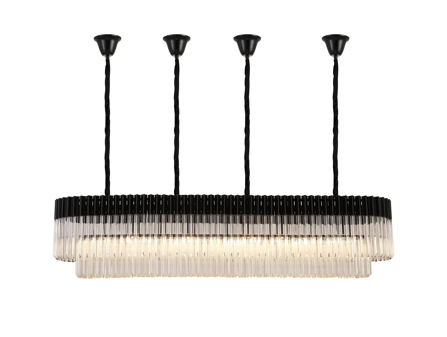 Longhorn 180 x 40cm Linear Pendant With Bell Cup, 9 Light E14, Matt Black/Clear Sculpted Glass