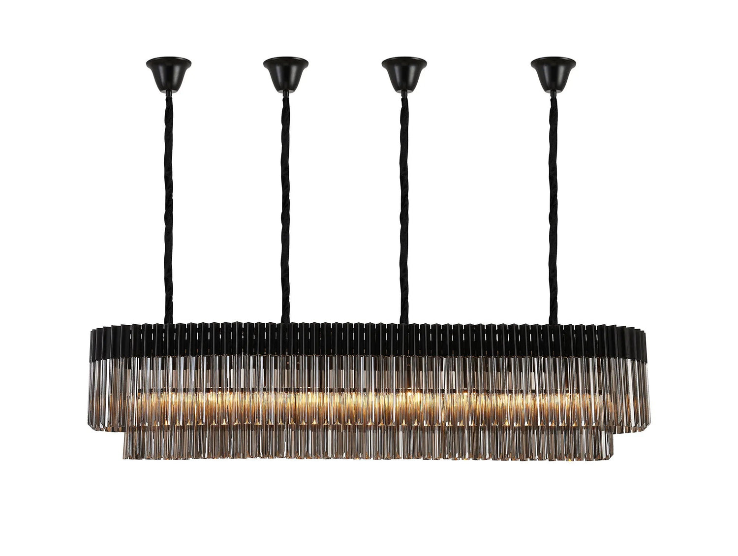 Longhorn 180 x 40cm Linear Pendant With Bell Cup, 9 Light E14, Matt Black/Smoked Sculpted Glass