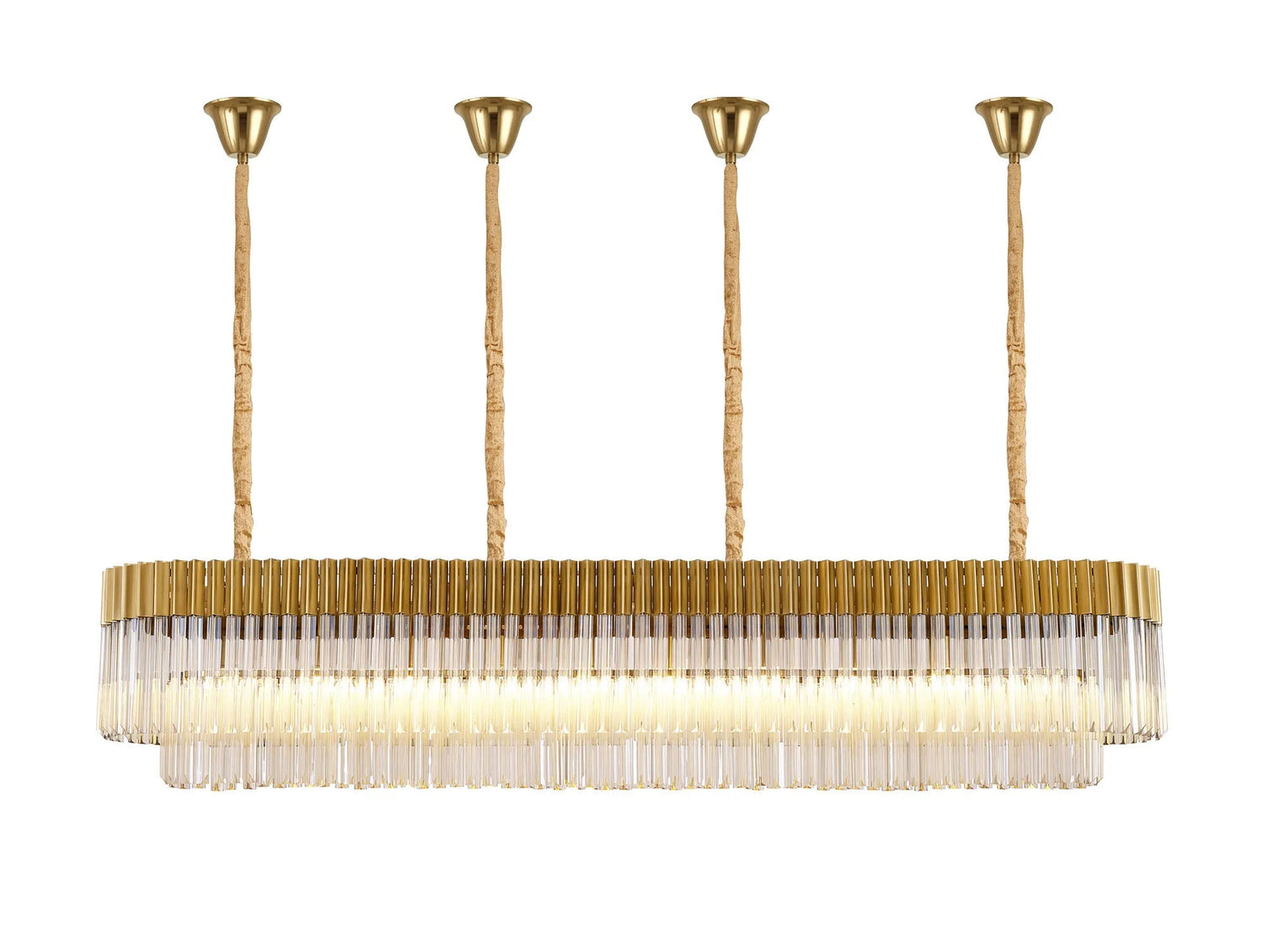 Longhorn 200 x 40cm Linear Pendant With Bell Cup, 10 Light E14, Brass/Cognac Sculpted Glass
