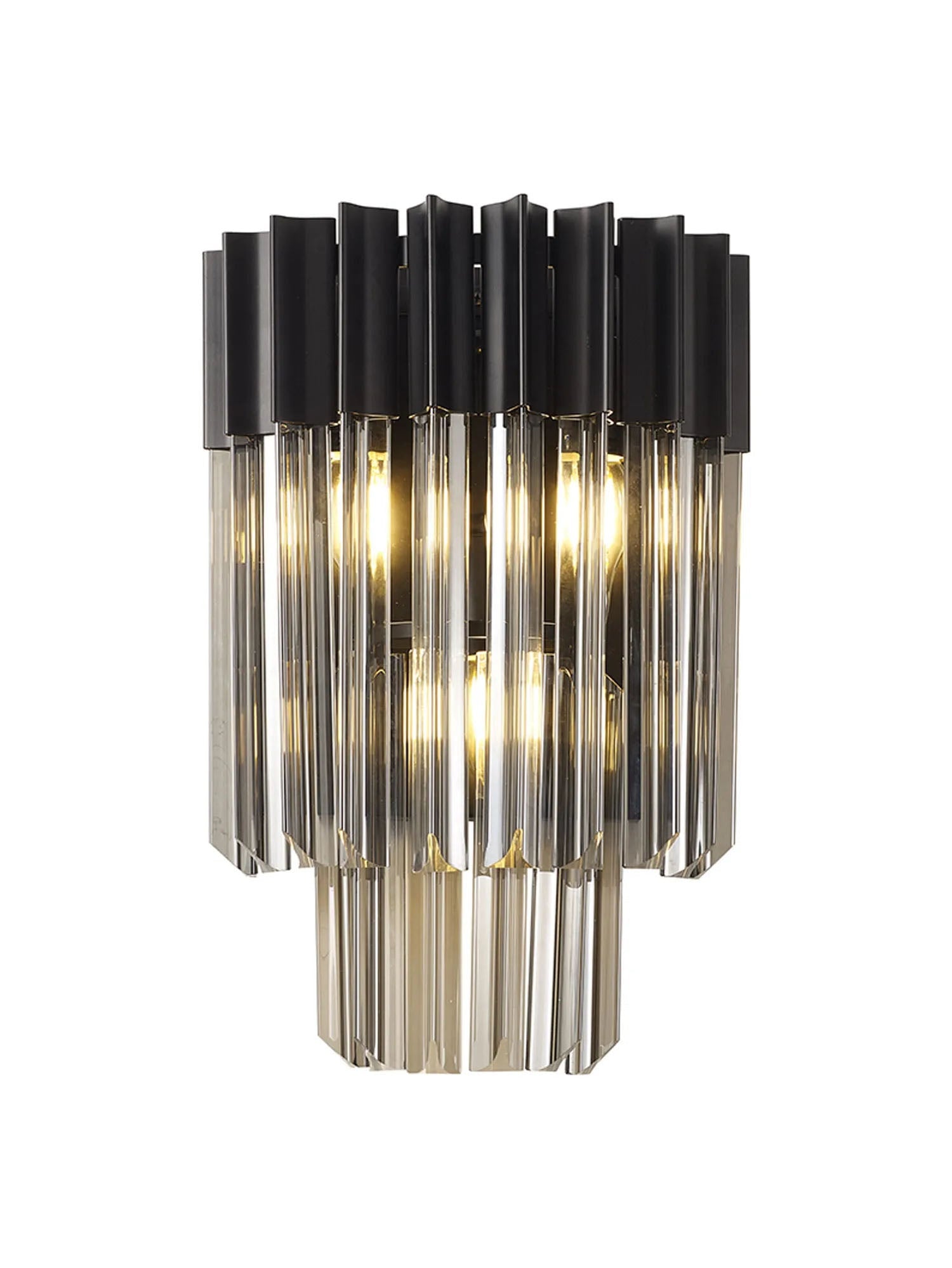 Longhorn 27.5 x H41cm Wall 3 x E14, Matt Black/Smoke Sculpted Glass