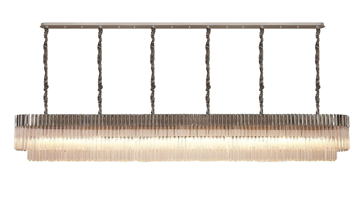 Longhorn 300 x 40cm Linear Pendant, 16 Light E14, Polished Nickel/Clear Sculpted Glass