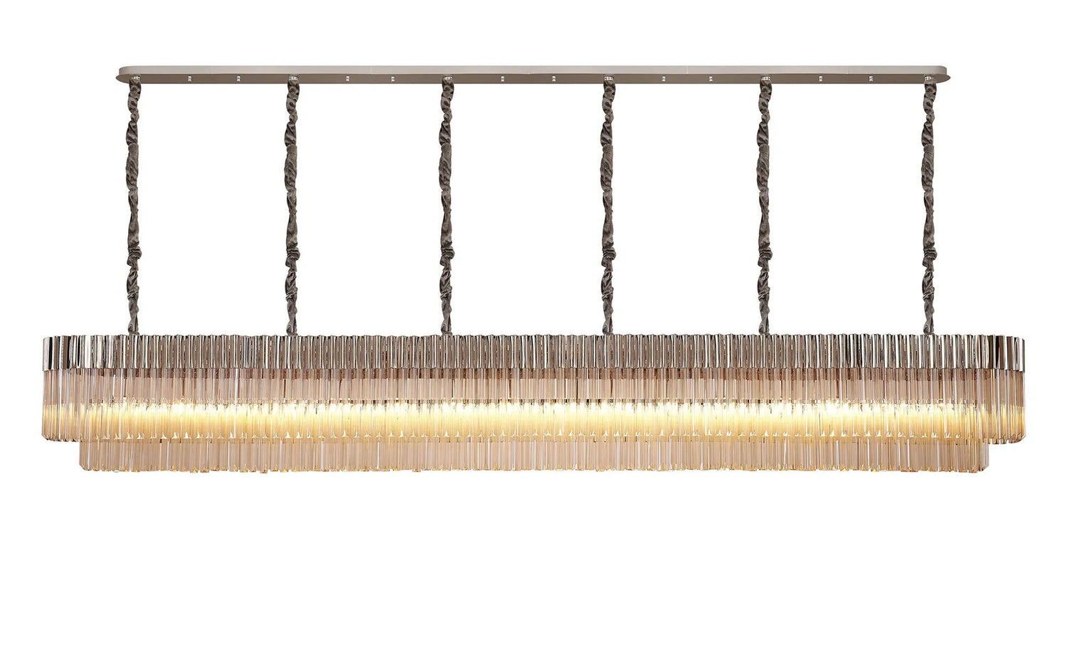 Longhorn 300 x 40cm Linear Pendant, 16 Light E14, Polished Nickel/Cognac Sculpted Glass