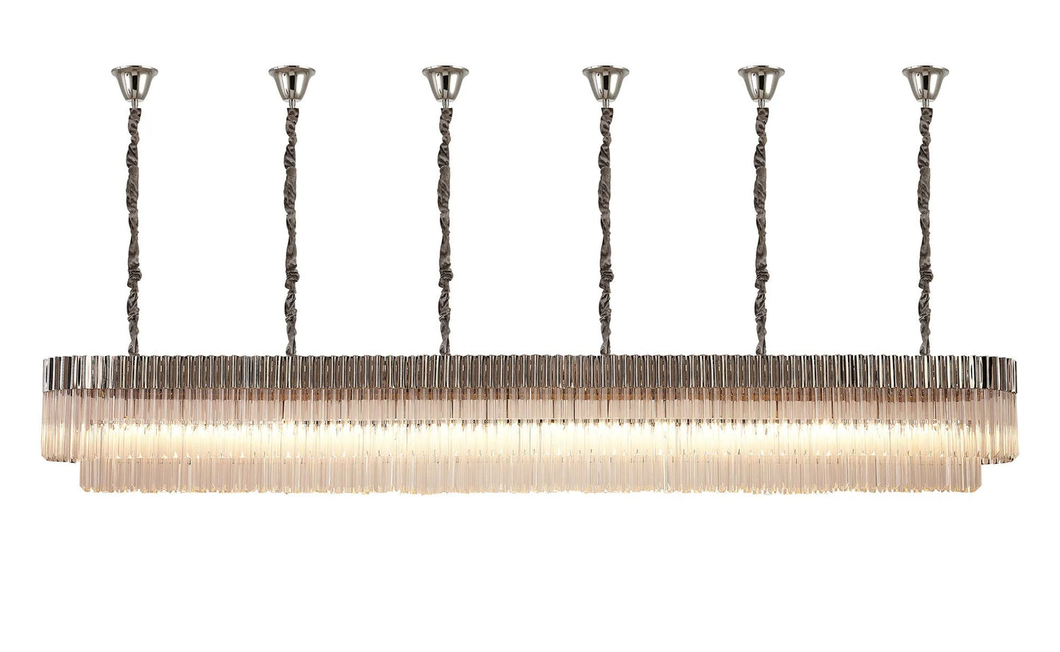 Longhorn 300 x 40cm Linear Pendant With Bell Cup, 16 Light E14, Polished Nickel/Clear Sculpted Glass