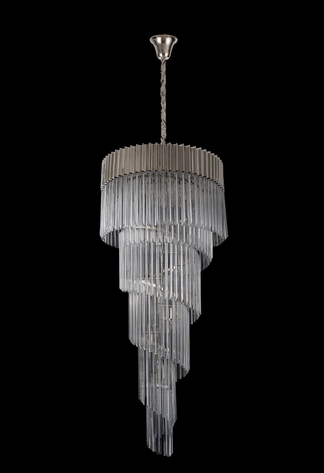 Longhorn 70cm Pendant Round 5 Layer Spiral 23 Light E14, Polished Nickel/Clear Sculpted Glass, Item Weight: 56.2kg