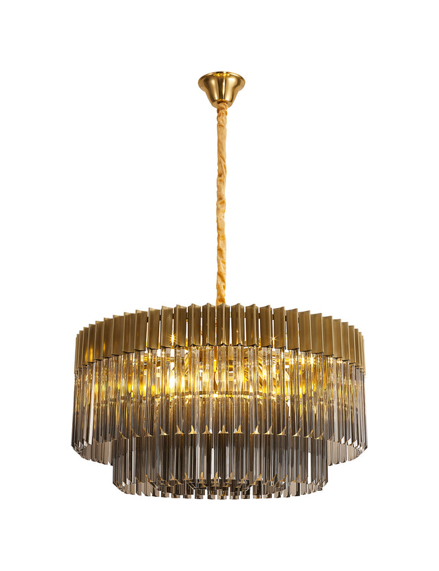 Longhorn 80cm Pendant Round 12 Light E14, Brass / Smoke Sculpted Glass, Item Weight: 25.4kg
