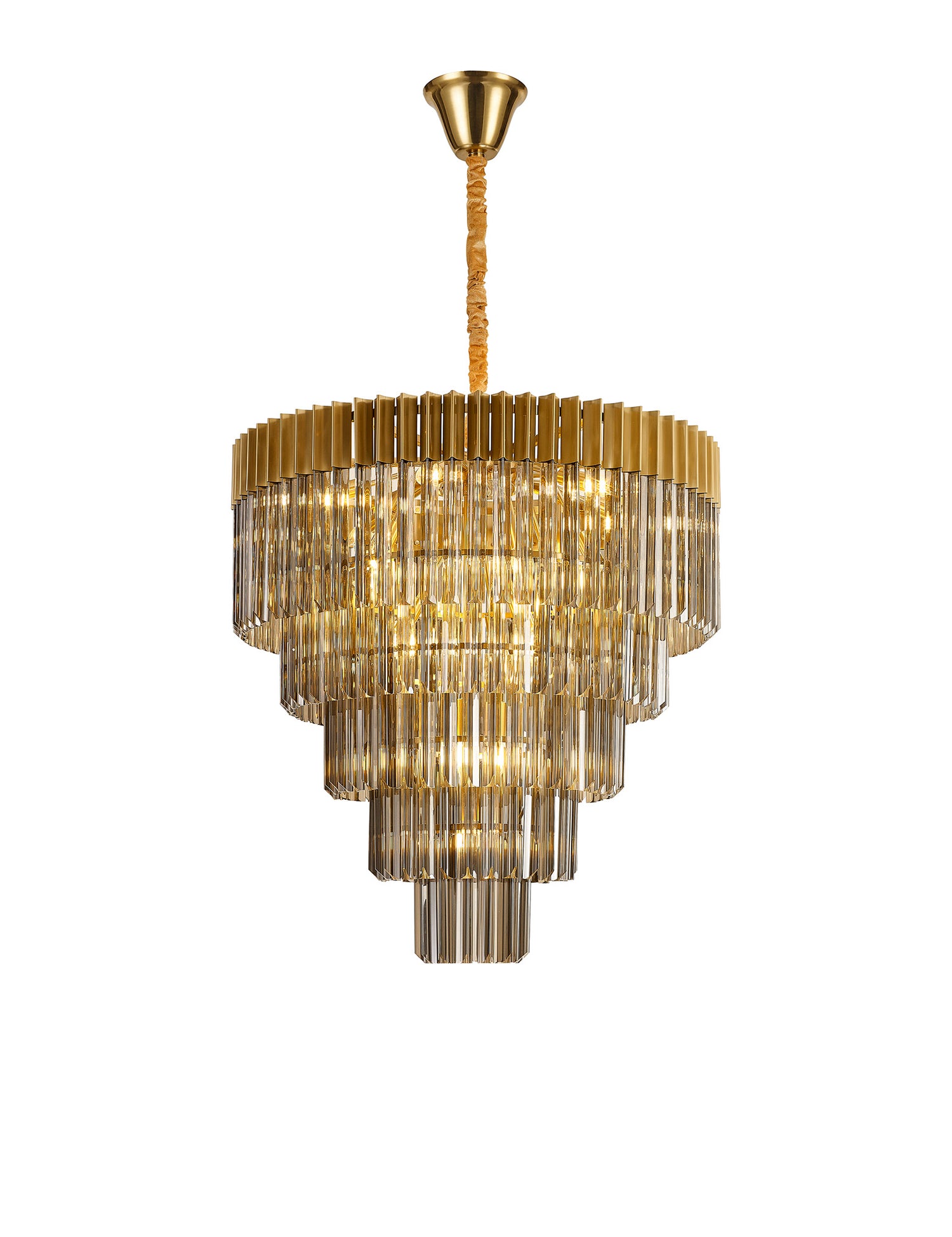 Longhorn 80cm Pendant Round 5 Tier 19 Light E14, Brass / Smoke Sculpted Glass, Item Weight: 32.6kg