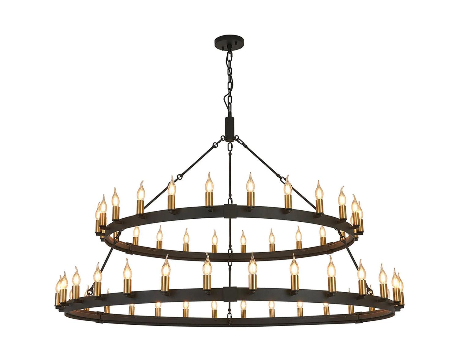 Matete 2 Tier 1.3m+1.6m Pendant, 24+30 Light E14, Satin Black/Brass