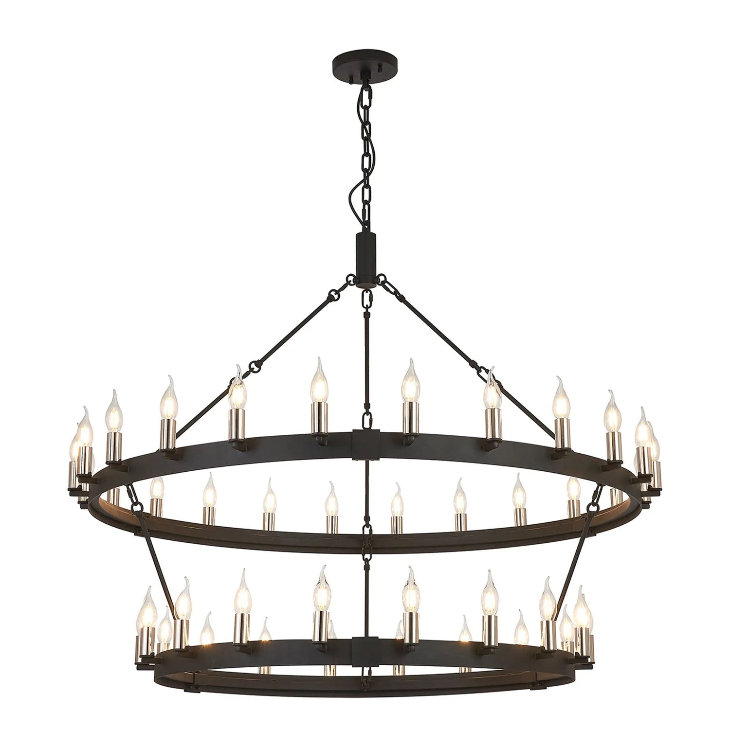 Matete 2 Tier 1.3m+97cm Pendant, 24+18 Light E14, Satin Black/Polished Nickel