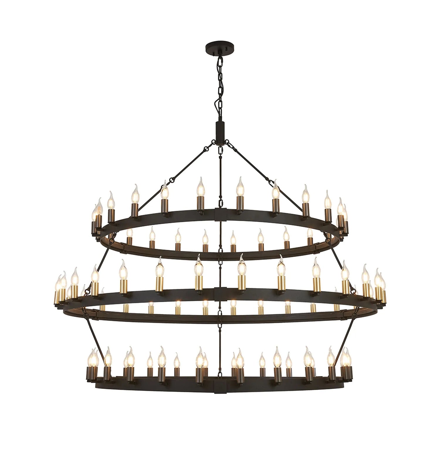 Matete 3 Tier 1.3m+1.6m+1.3m Pendant, 24+30+24 Light E14, Satin Black/Satin Gold/Gun Metal