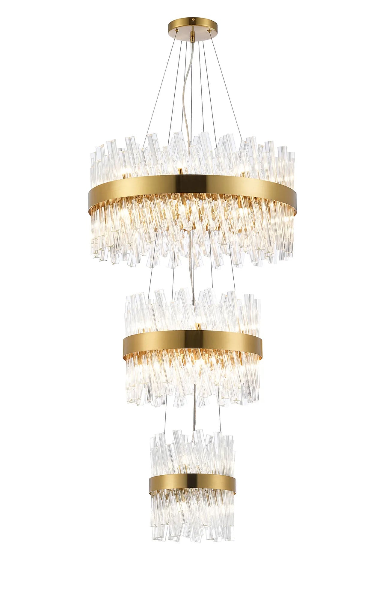 Melville 3 Tier 25cm + 40cm + 60cm Pendant, 6 + 10 + 18 Light G9, Brass/Clear