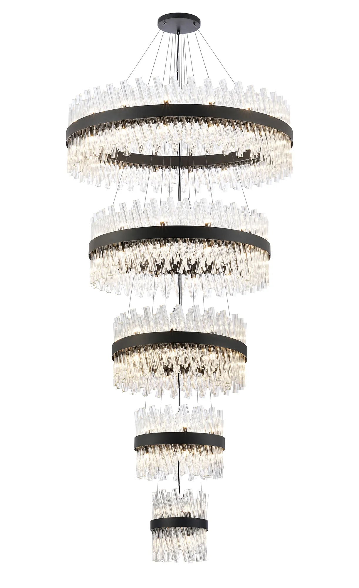 Melville 5 Tier 25cm + 40cm + 60cm + 80cm + 1m Pendant, 6 + 10 + 18 + 24 + 32 Light G9, Black/Clear