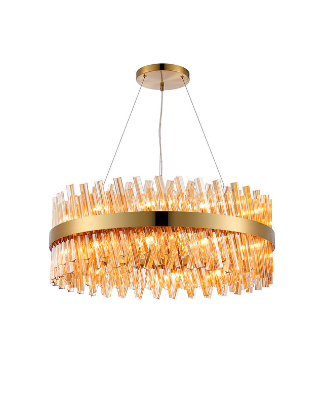 Melville 80cm 24 Light G9, Pendant Round, Brass / Amber Item Weight: 23.13kg