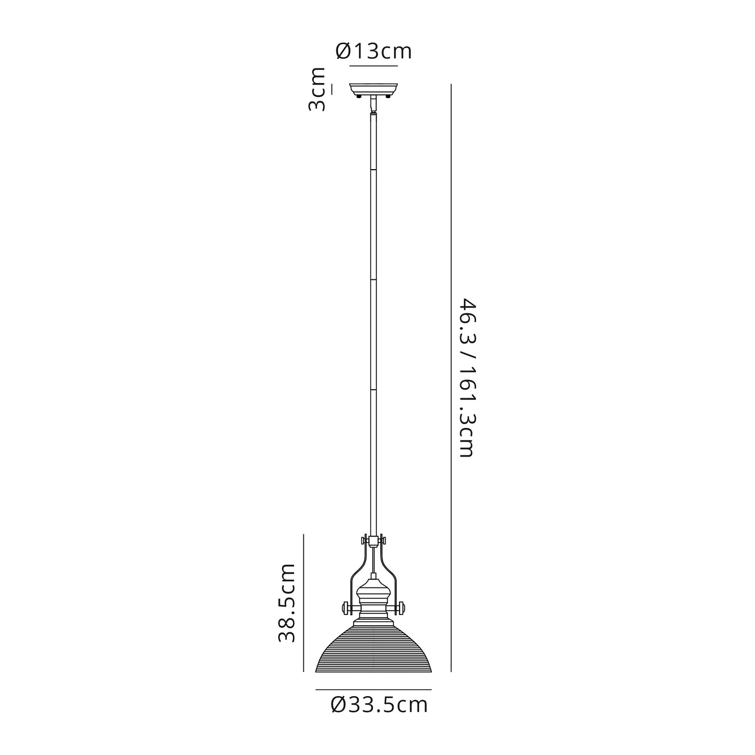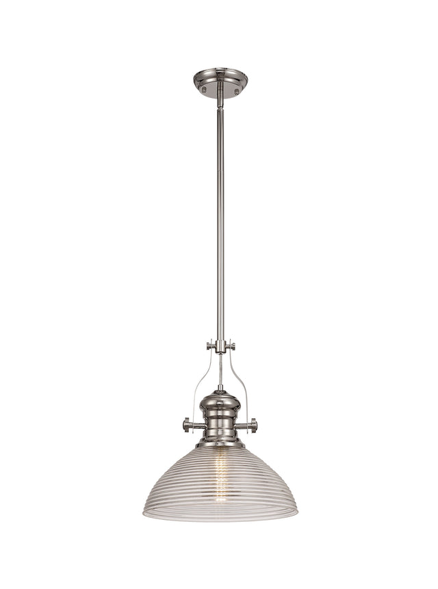 Munro 1 Light Pendant E27 With 33.5cm Prismatic Glass Shade, Polished Nickel/Clear