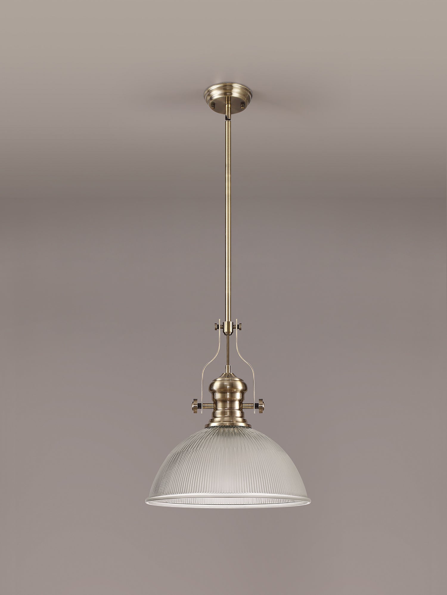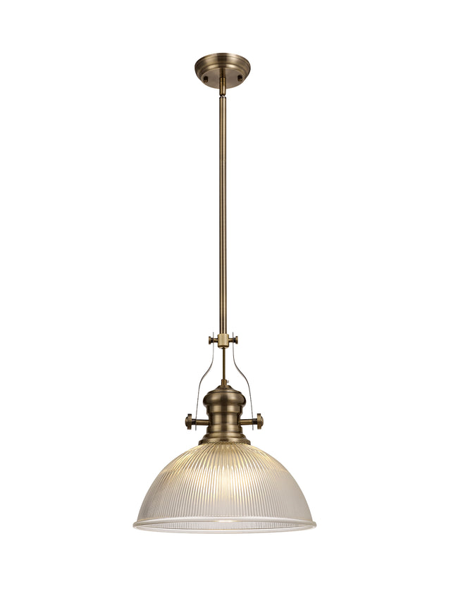 Munro 1 Light Pendant E27 With 38cm Dome Glass Shade, Antique Brass/Clear