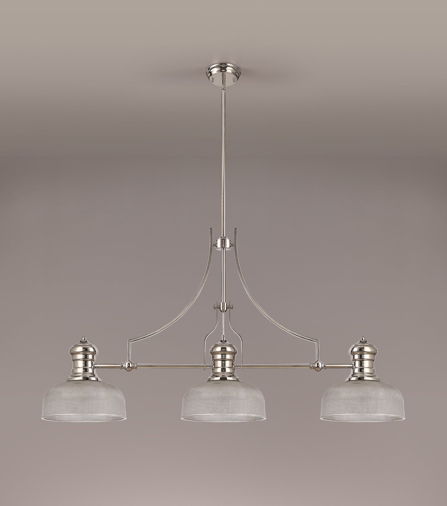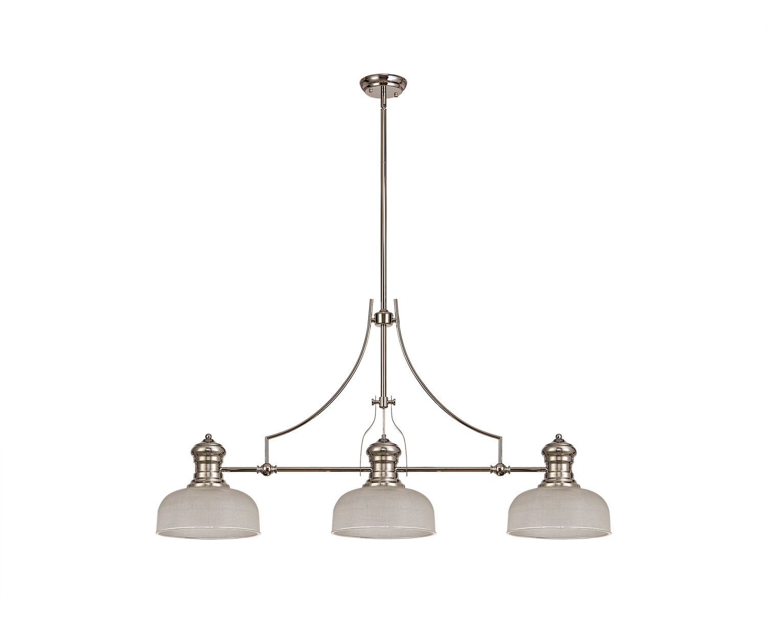 Munro 3 Light Linear Pendant E27 With 26.5cm Prismatic Glass Shade, Polished Nickel, Clear