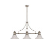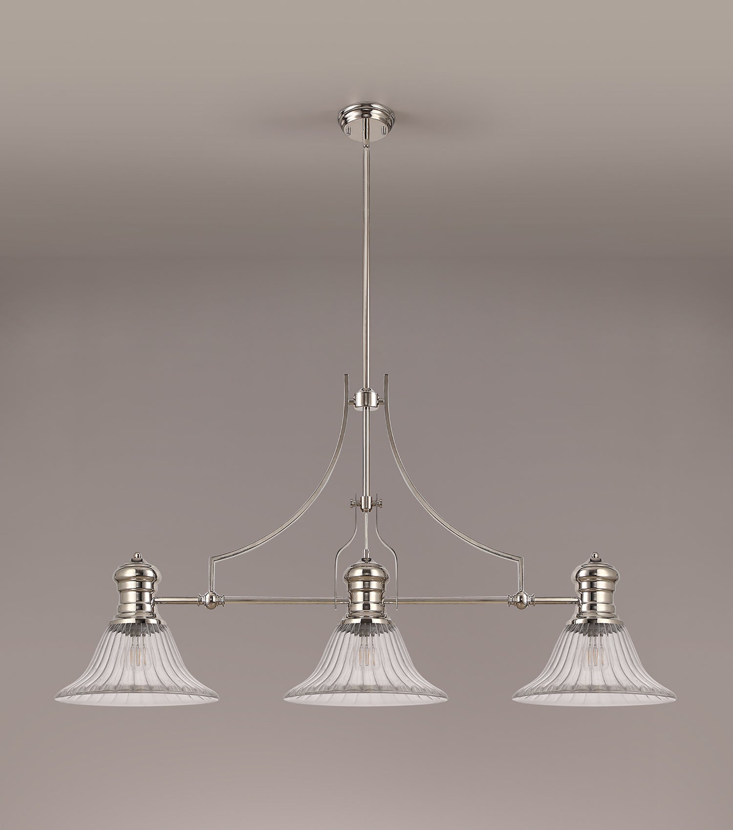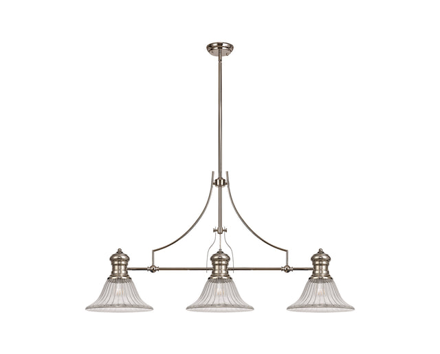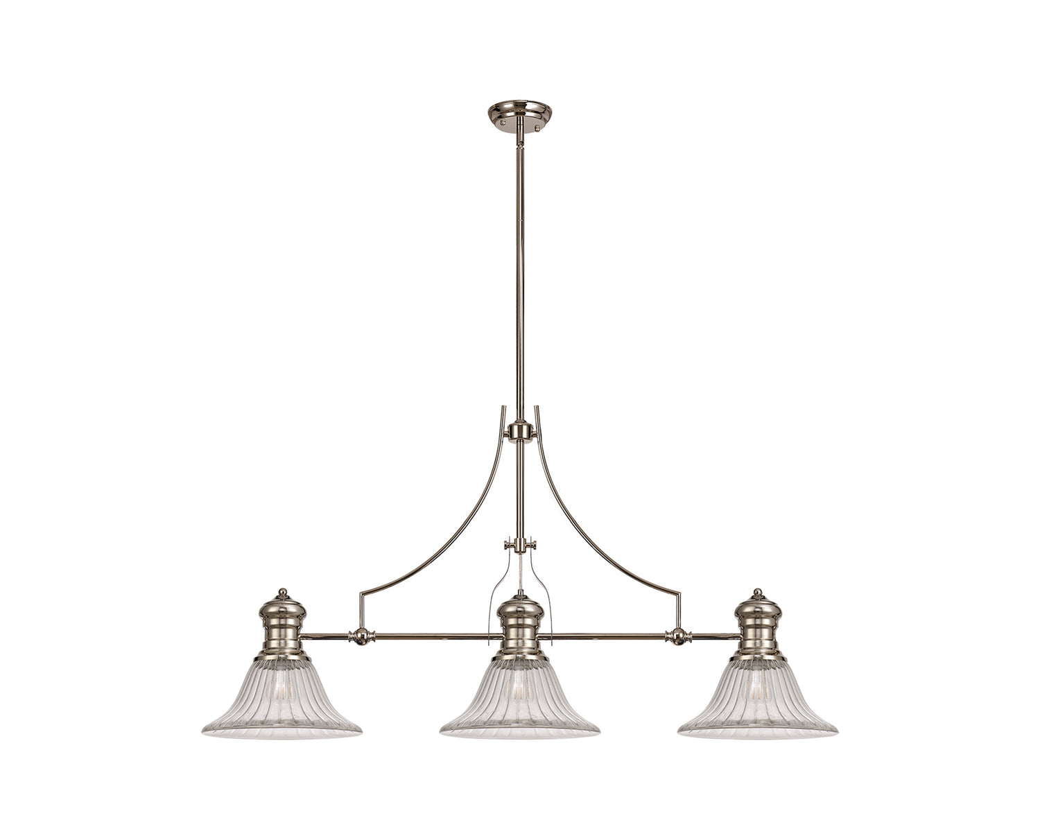 Munro 3 Light Linear Pendant E27 With 30cm Bell Glass Shade, Polished Nickel, Clear