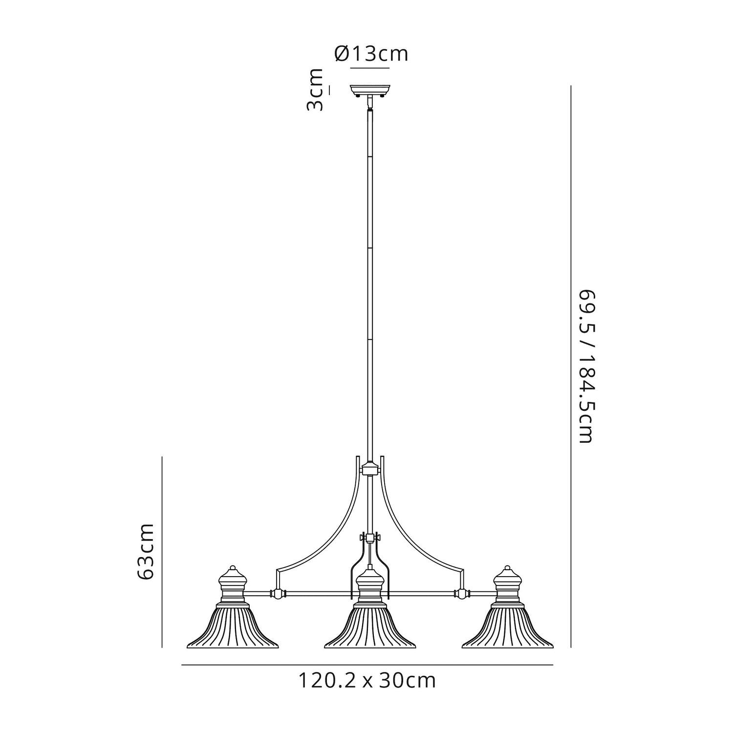 Munro's unique shapes project a modern ambience which is partnered with traditional colour finishes to create a more contemporary collection. Available as a one light pendant or three light bar pendant with a choice of optional shades in different shapes to shade the light emitted from the E27 lampholders. The distinctive inimitability of this design produces a prominent feature in its given space.