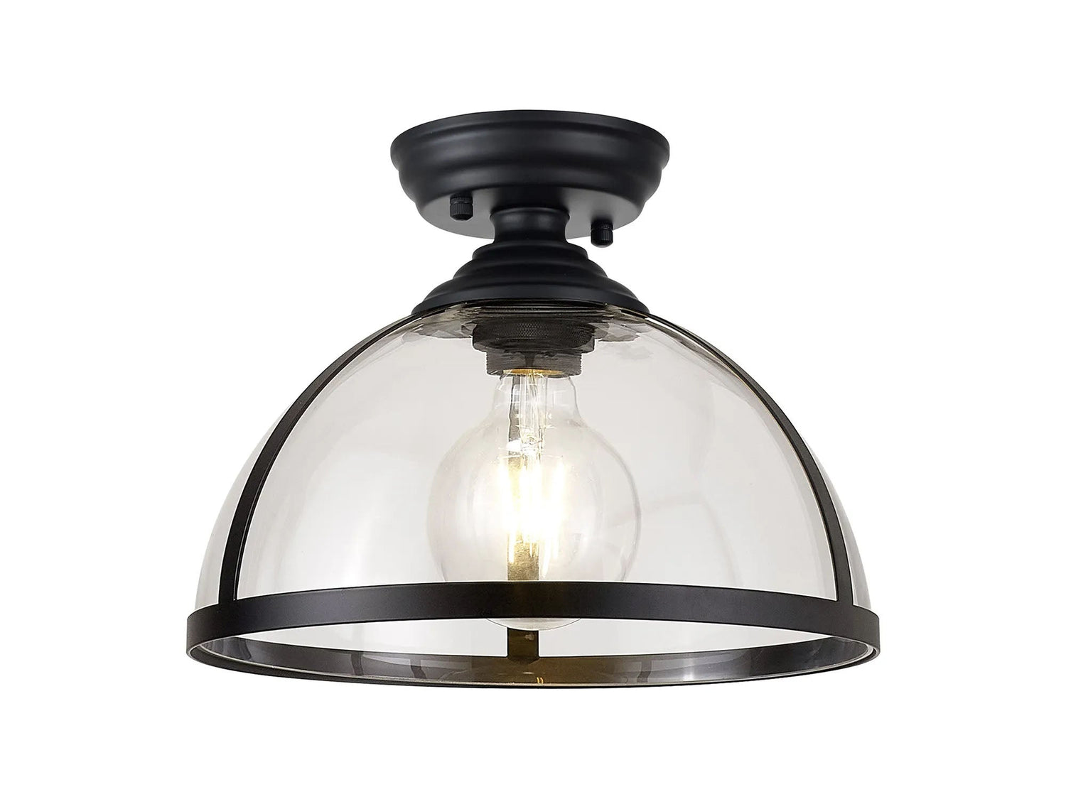 Munro 30cm Flush Ceiling Fitting, 1 x E27, Black/Clear