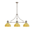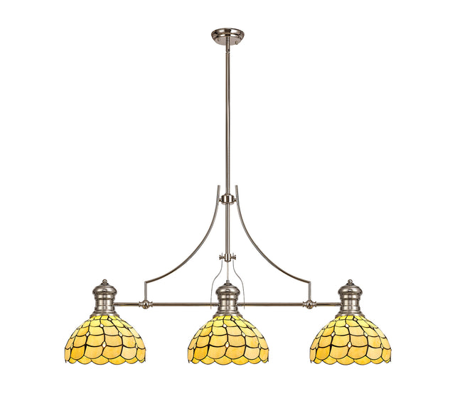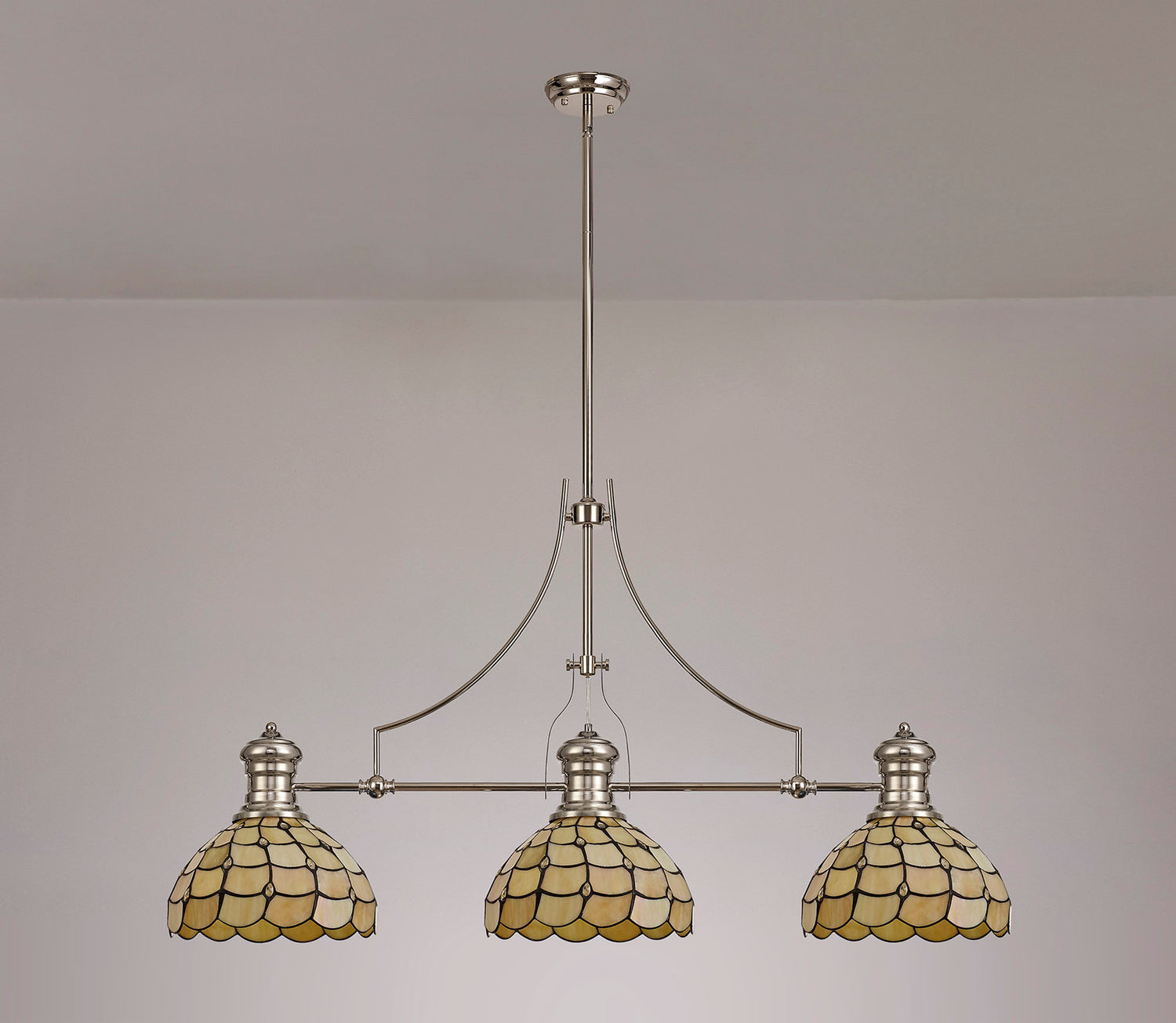 Finney 3 Light Linear Pendant E27 With 30cm Tiffany Shade, Polished Nickel, Beige, Clear Crystal